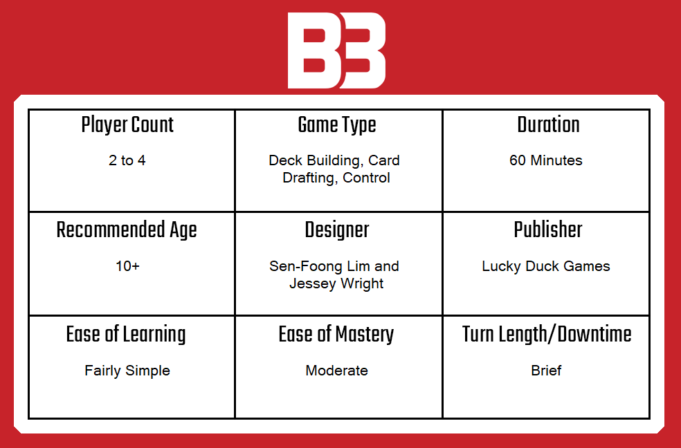 If you’re in the market for a fast paced, straightforward deck-building game with a bright, colourful theme and a lot of personality, then Lucky Duck Games’ Mutants: Genetic Gladiators might be of interest to you. It might be familiar too, since Mutants was originally released as a mobile phone and Facebook game. With four prebuilt decks and a number of drafting modes to enable broad replayability, there’s a lot to sink your second (or third) row of teeth into.