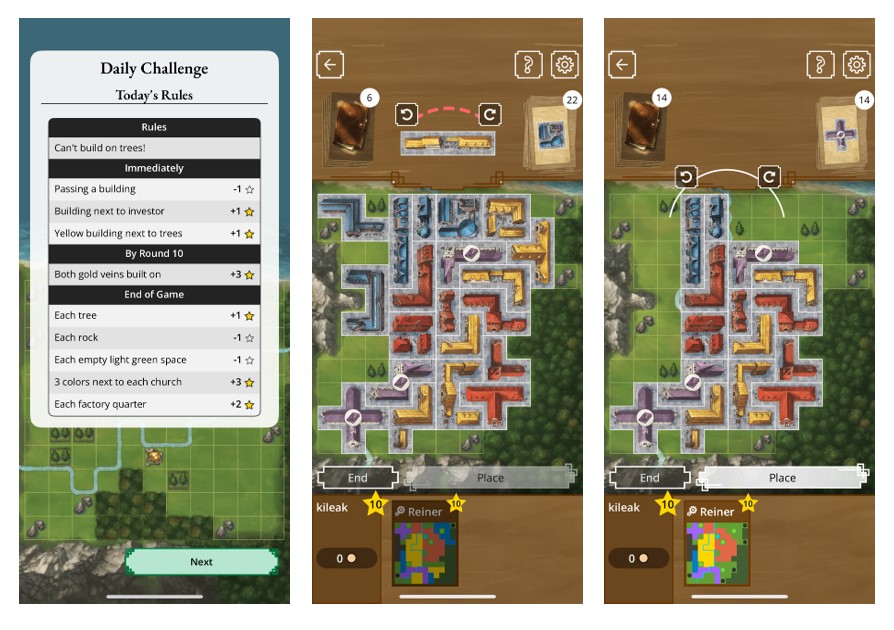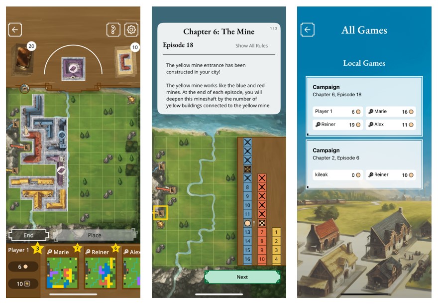 The core gameplay remains intact. Each episode tasks players with placing polyomino-style building tiles onto a personal grid, following simple placement rules and aiming to maximise their score. The campaign unfolds gradually, layering in new mechanics and challenges as you progress. On the tabletop, this meant stickers — lots of them. Boards were customised, tiles were altered, and player supplies evolved over time. It was tactile, charming, and irreversible.