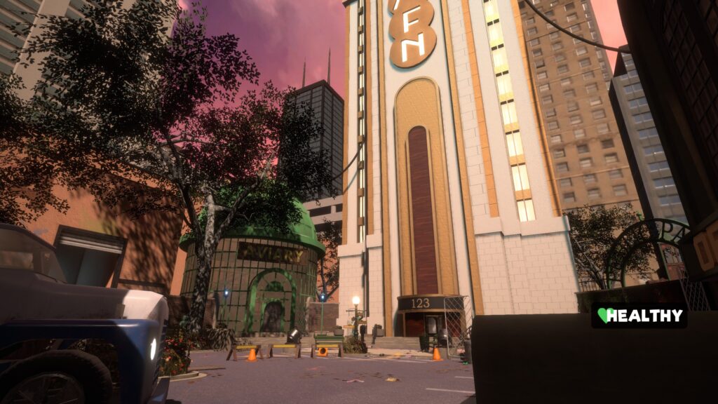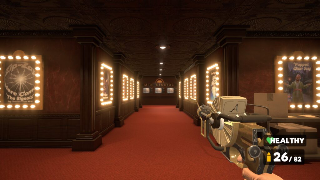 Starting in your repair truck, all you’re set up with is whatever you can find stashed in your glove compartment or anywhere in your van, that and your wits, as you venture into the lobby and are immediately met by its concierge of sorts, Ricky. After meeting him you begin your journey deep into the studio to put the channel off the air.