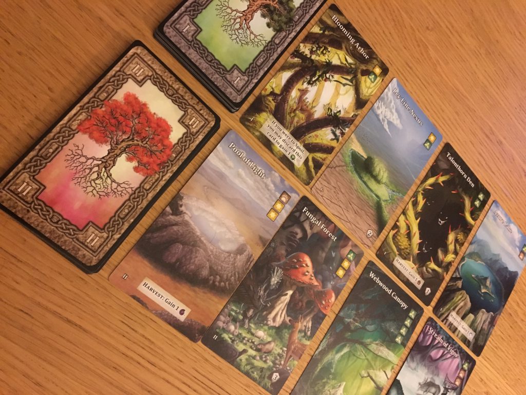 For example, aiming to purchase a couple of Fertile Land cards every turn for the first two or three rounds and playing relatively conservative is viable, as is pushing your luck to try to draw enough mana to buy a powerful but expensive card like Dreadcoil Cobra, which brings you four points closer to victory with each harvest phase.There are more complex strategies and sub-themes, too — collecting those Growth symbols to counteract decay, or focussing on the more specialised and powerful Vale Cards.