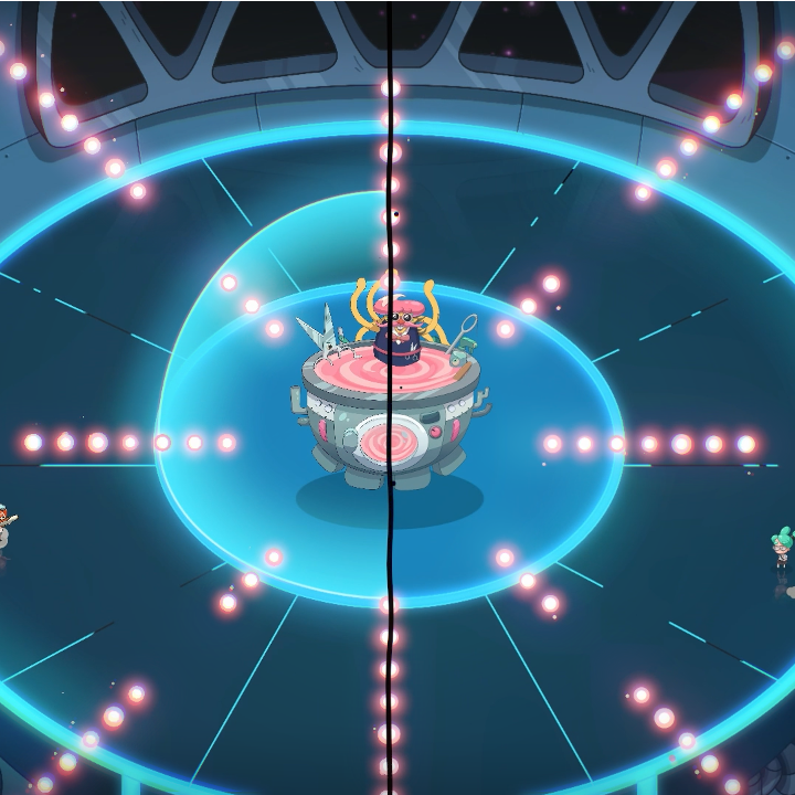 However, in no time we were knocking out enemies by clipping them with the weapon as we passed it from side to side, deliberately endangering each other — as you share a health bar — in order to try and do something cool. We did get a little tripped up on the boss fight, largely as the zone that you can move in rotates while the boss is moving, spawning enemies and shooting at you. If the weapon hits the bosses shield, or a wall, then the passing of the weapon will cancel, adding an extra wrinkle to the gameplay. To boot, when you touch the barrier, by mistake or not, you take damage, and that racks up quite quickly while there are a dozen moving parts… but, that’s also perhaps some of the charm here.