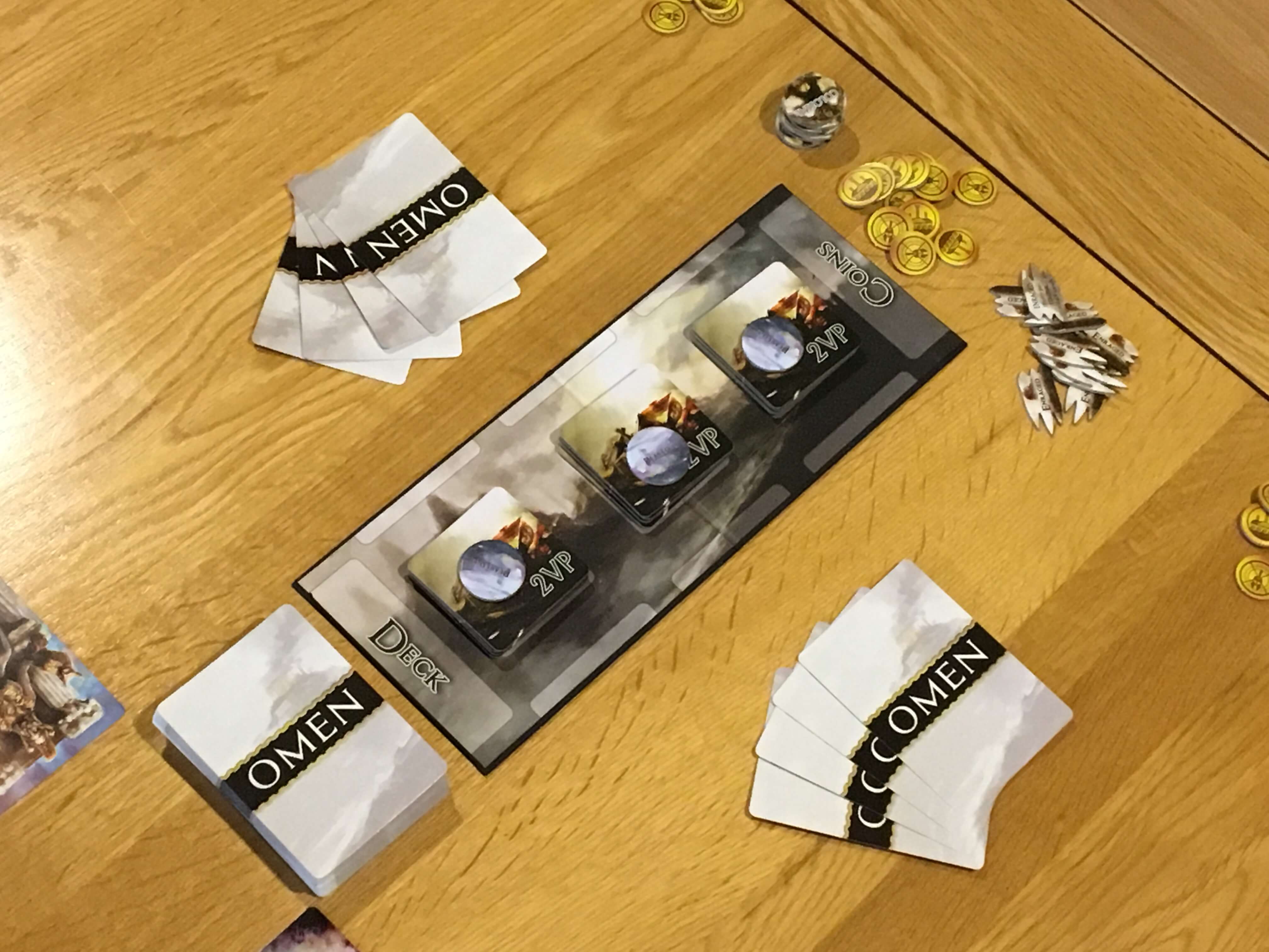 The tight focus on just three cities and the strict head to head nature of Omen give it a high level of tension that is only enhanced by the theme and the excellent artwork. The players have a huge amount of control over their destiny thanks to the way that each game phase is laid out. I also like that players draw from a shared deck, so whilst there’s a deckbuilding element to Omen, it happens entirely within the game and not outside it.