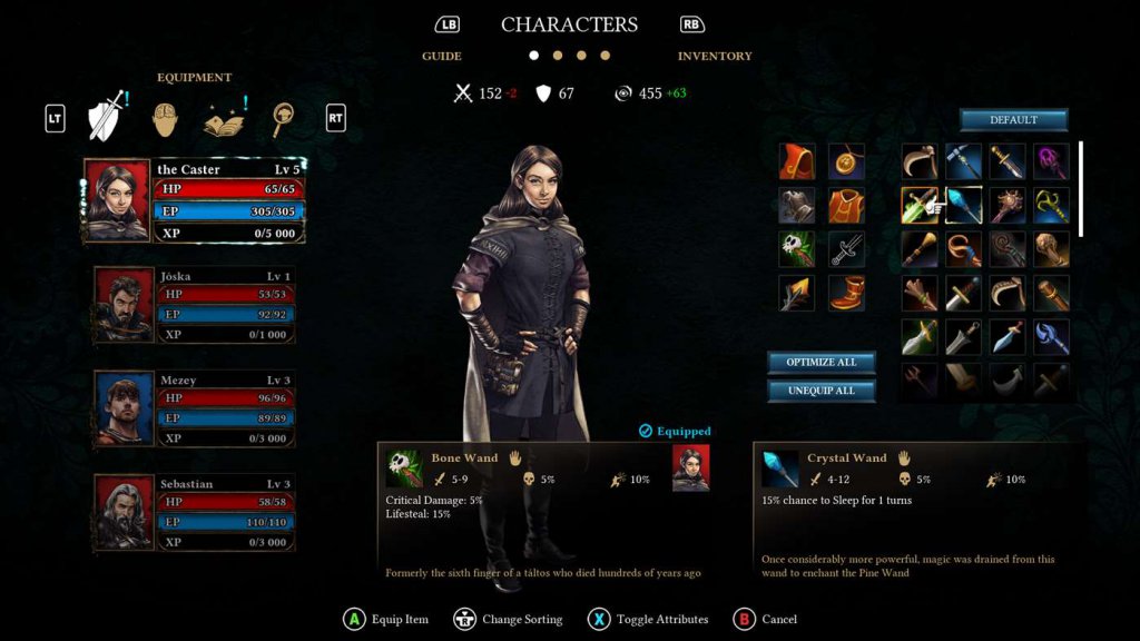 This level of customisation allows characters to be somewhat specialised and for the player to have a complete and clear understanding of what their capabilities are, whilst still allowing for future planning. This approach feels fair and even handed, given the need to balance the party for different encounters. This is actually achieved through having a large number of supporting characters, which can be changed in and out at bonfires once a certain point in the game is reached.