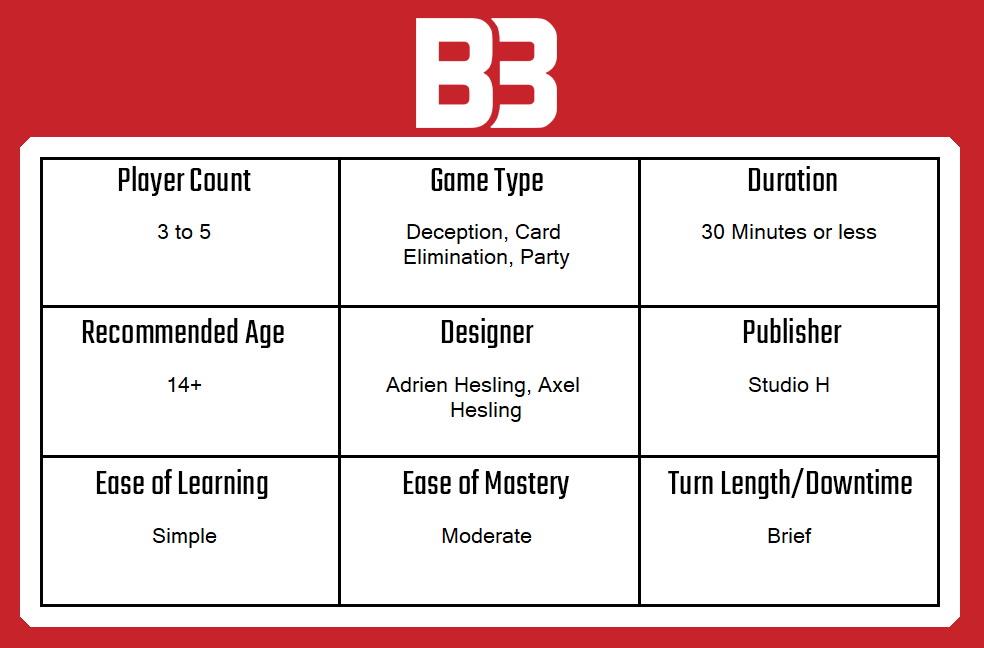 OK, so it’s not really a party game, but Oriflamme is played with between three and five players, and it is similar in weight and style to games like Coup and High Society but with a little more weight. The basic premise is simple — the players will play six rounds of placing (and sometimes revealing) cards, and then count up their influence at the end. Highest influence wins.