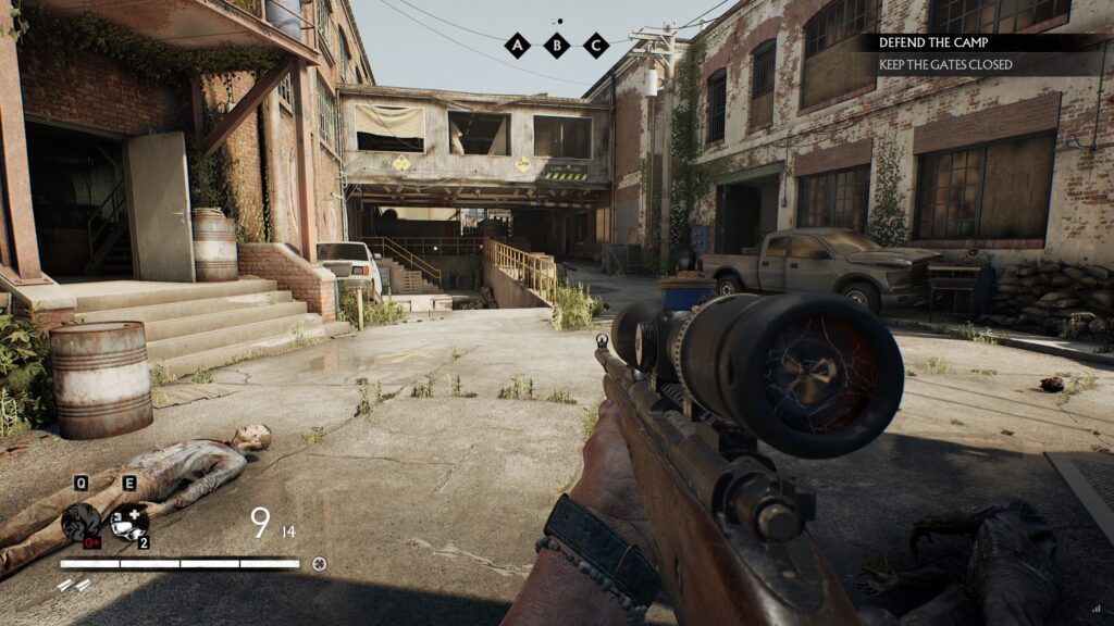 After some basic puzzles and a lot of zombies I had started to notice some of “The Family”, the faction that had stolen the water purifier, had set up defences and barricades to hinder my progress. I thought it best to try and stealthily approach them but most of the combat is clearly catered towards you having more people to fight with.