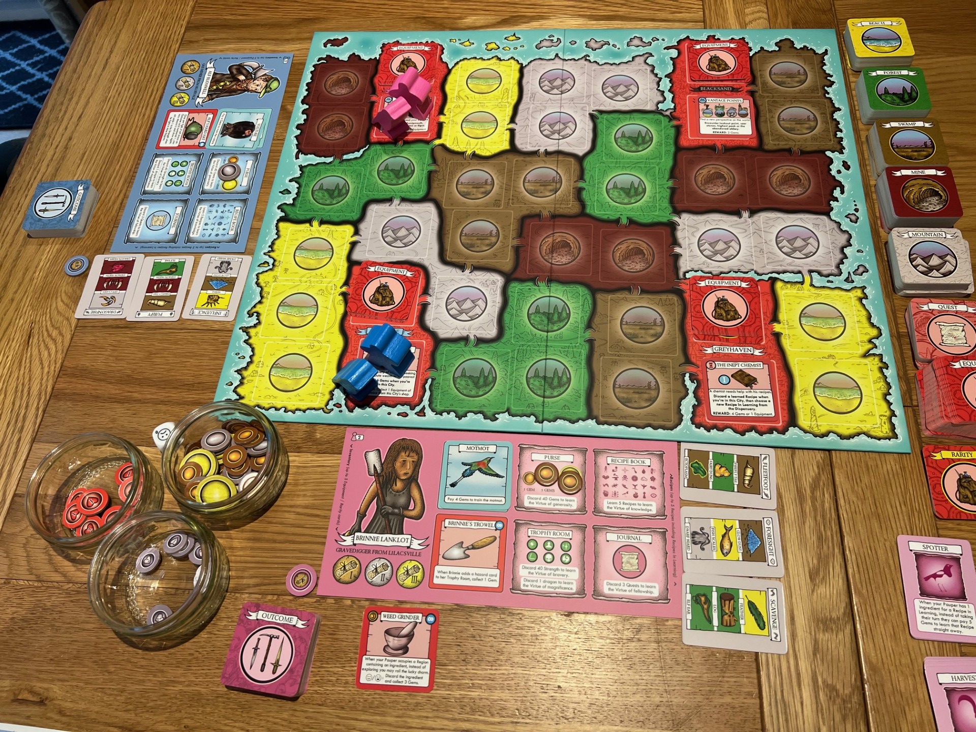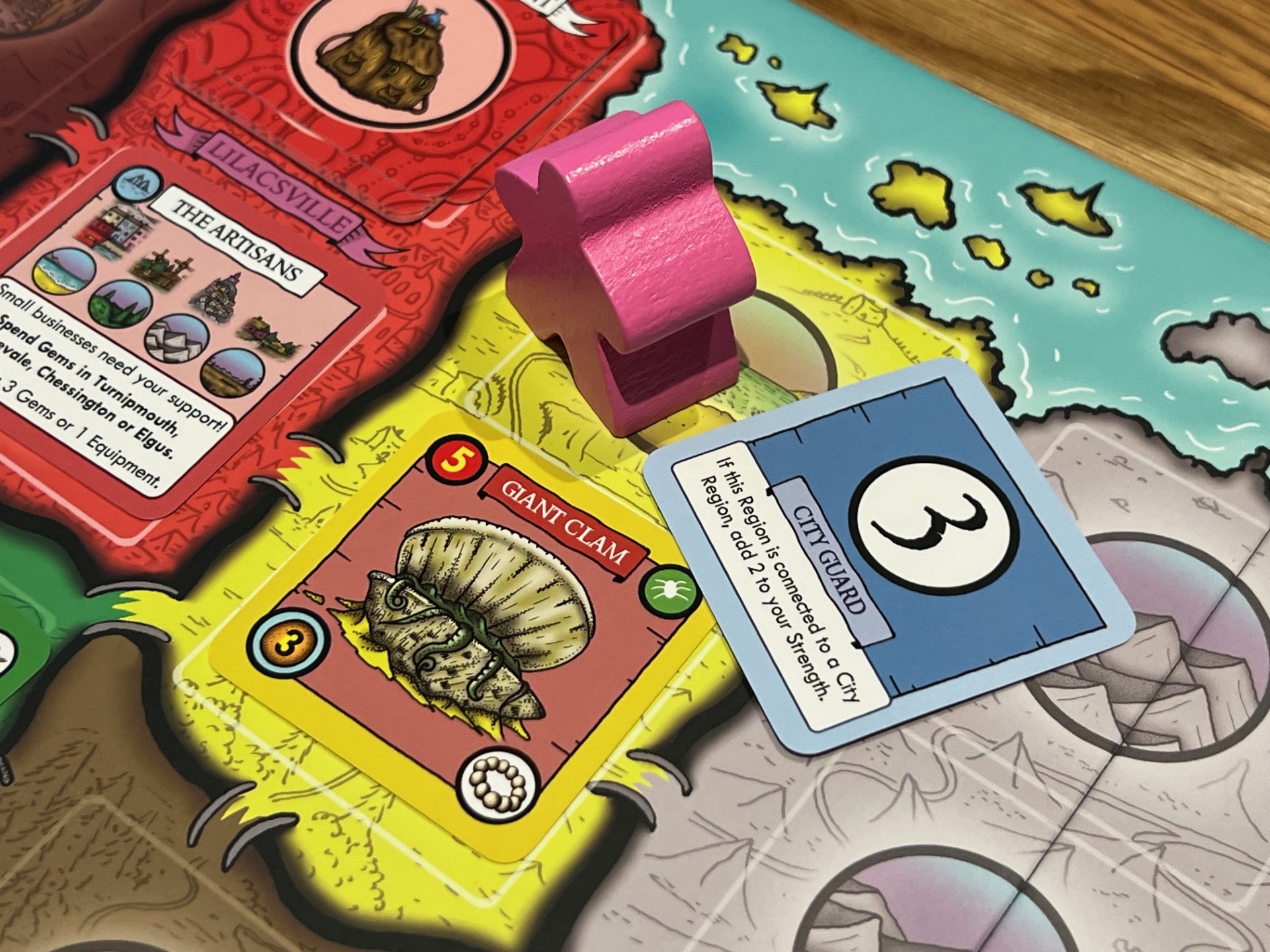 The new edition upgrades the board, cards and tokens with sturdier materials and cleaner printing, making the game feel more like a finished product and less like a lovingly assembled prototype. The artwork, still hand-drawn by Stapleton himself, has been subtly refined, with improved contrast and clarity that make the board easier to read and the cards more legible across the table.