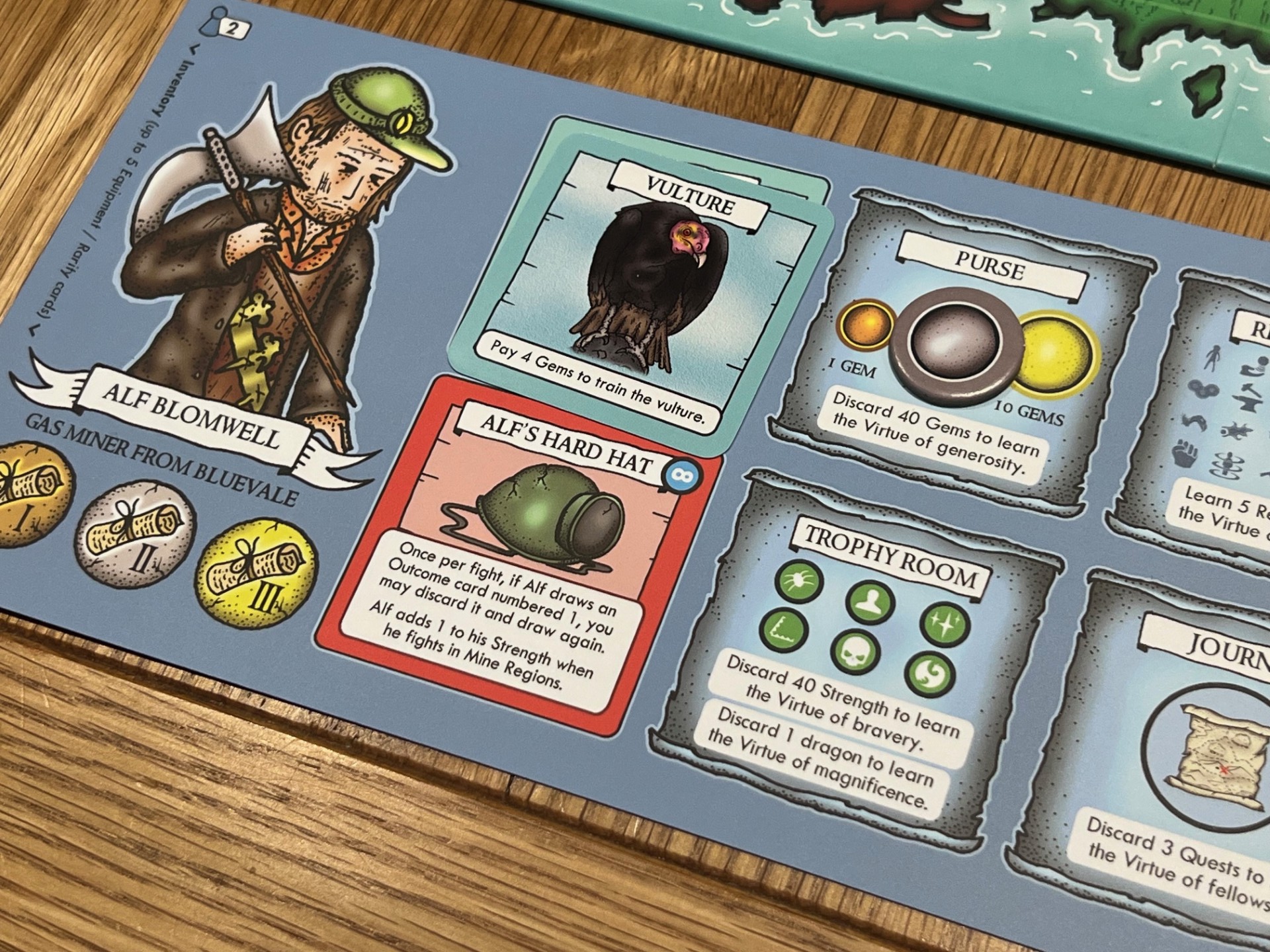 The Second Edition also includes a few quality-of-life improvements that returning players will appreciate. The player boards have been redesigned for better usability, with clearer iconography and more space for tracking items and progress. The virtue tokens are now color-coded and easier to distinguish, reducing the chance of mix-ups during play. These are the kinds of changes that don’t necessarily make headlines but contribute to a smoother, more enjoyable experience overall.