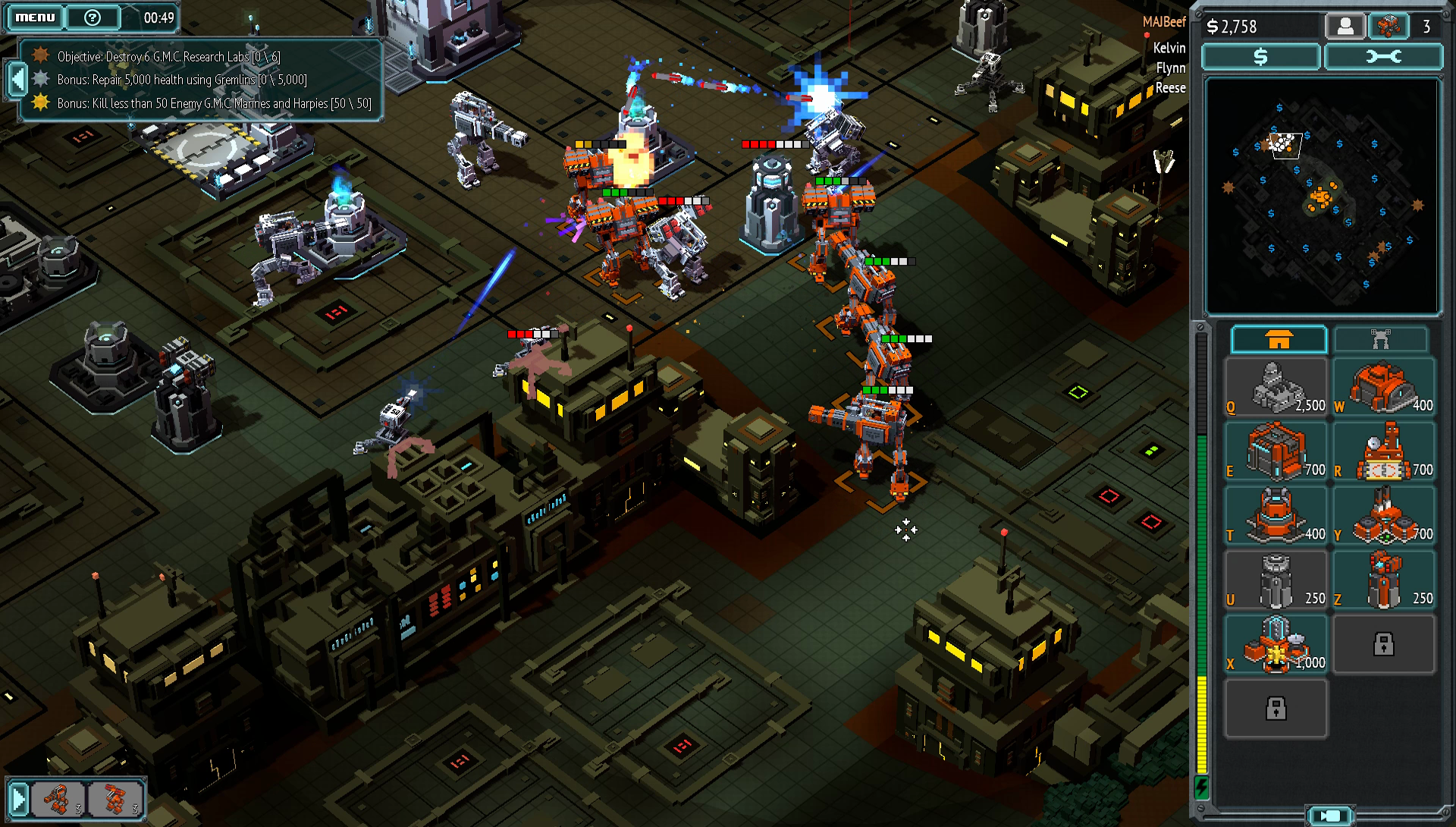 New units and buildings, as with most RTS, are unlocked by completing missions, but are then instantly accessible at the start of the next mission – it means that there’s no regimented order to getting to the bigger units, short of setting up and maintaining links to the resource points.