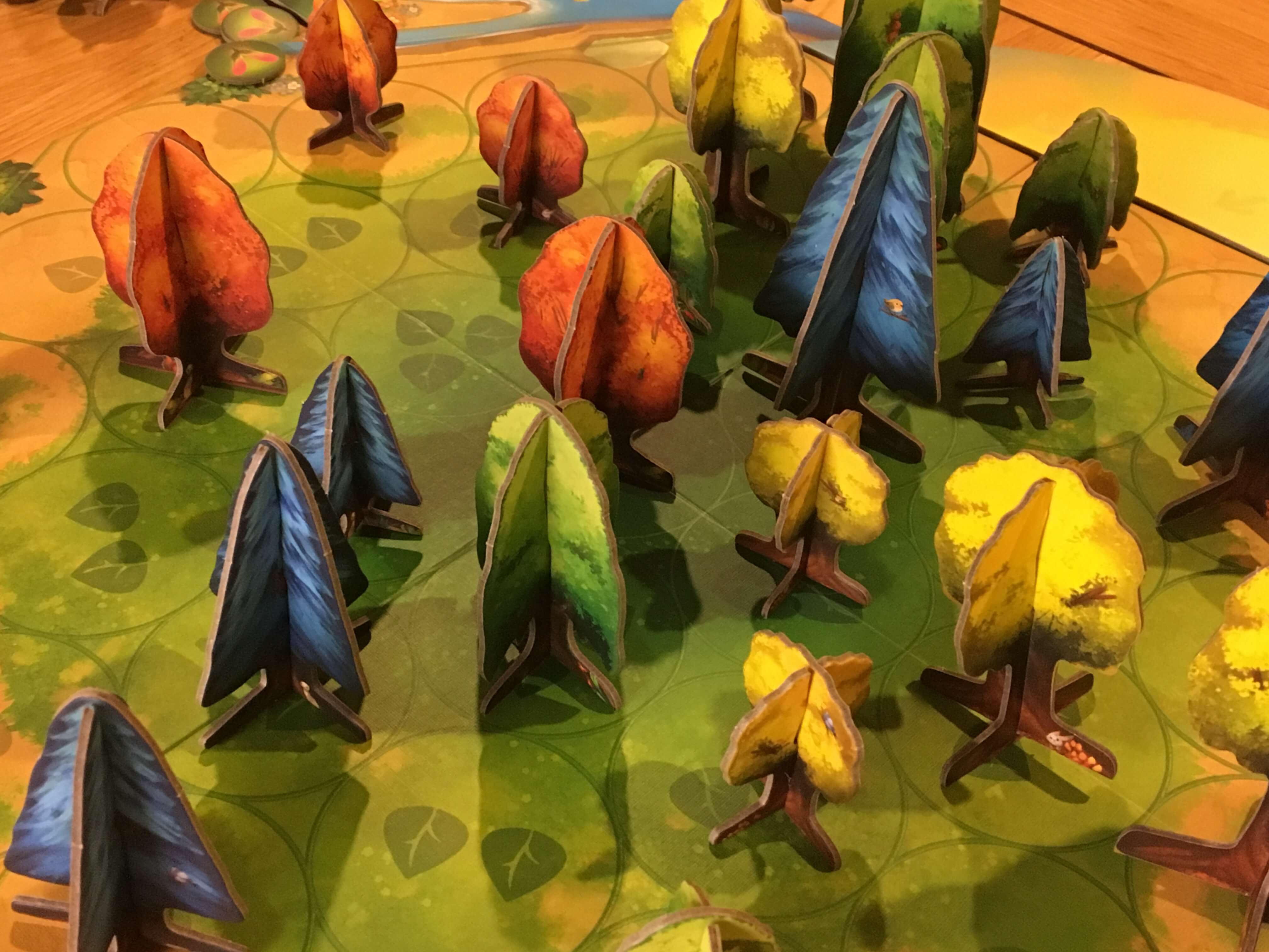 Honestly, this just felt weird to me at first, but it soon becomes second nature, although there is another nuance — when a tree is upgraded to a larger one, if there’s no space for it to return to on the player board, then it actually goes back into the box meaning that it can’t be used again. This isn’t a major problem with the small trees, but it is something that needs to be considered with the midsize trees because they are in shorter supply overall. In any case, once it becomes less of a weirdness and more of a strategic concern, it soon becomes second nature.