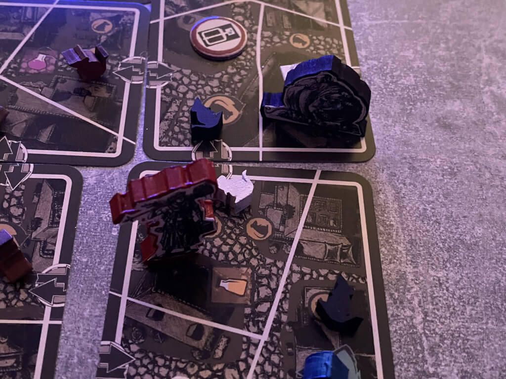 One of the things that I really like about The Ratcatcher is how it uses a really simple (and easily memorable) set of AI rules to drive the behaviour of the enemy rats that also links to the nemesis win condition. To summarise this, as rats begin to spawn on the board (either when a new location is added, or on a regular spawn point) then depending on what colour they are, they’ll do one of two things.