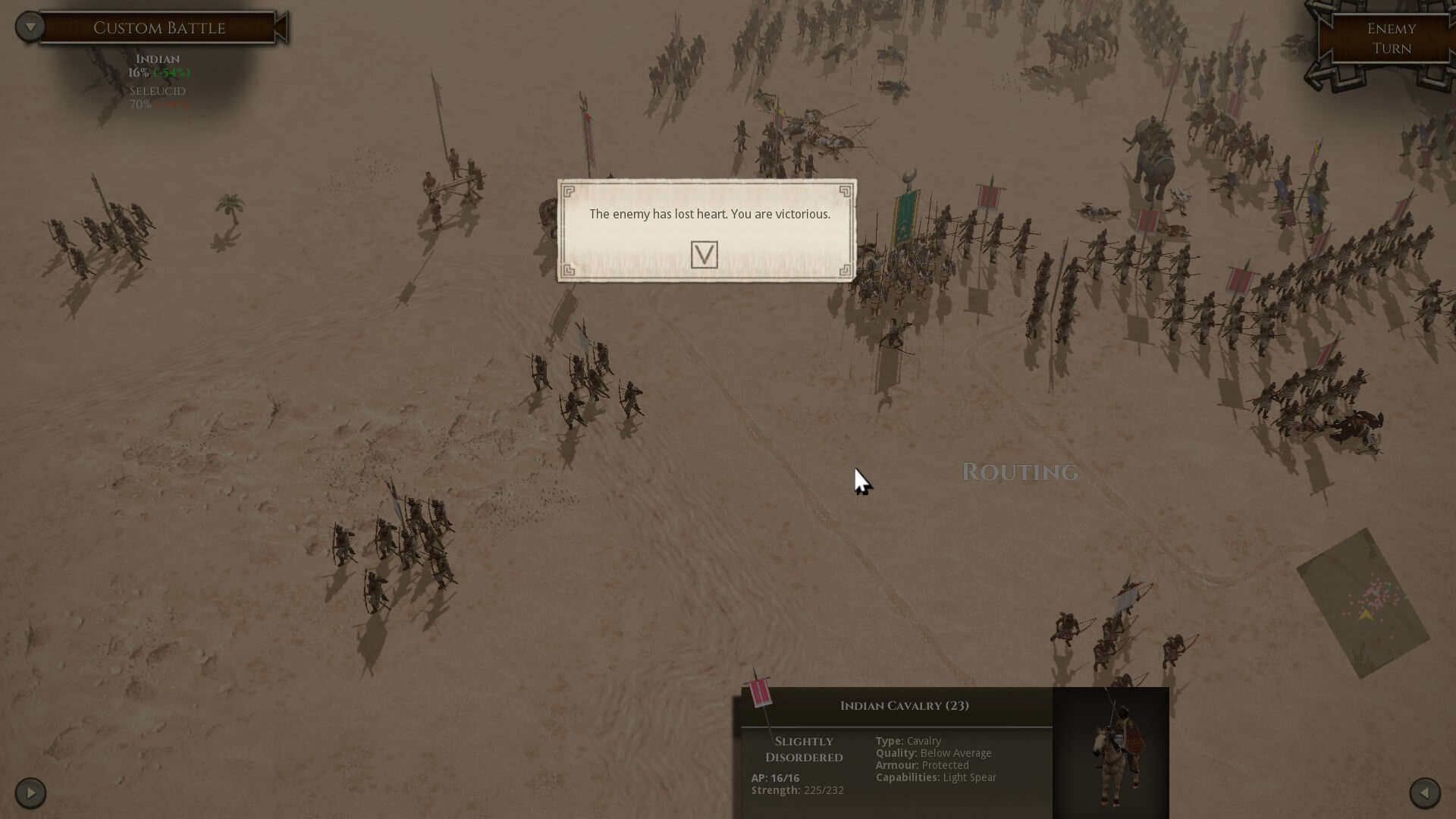 Rule Number One for victory: your leader cannot die! If he dies, you lose. You also have to win each fight along the way in order to progress to the next conflict of the campaign. If you lose one battle, you must replay that stage of the campaign until you are victorious in order to proceed to the next battle. Also, your judgement about the amount of victory comes into play as well. If you win a stage, but you feel like it wasn’t by quite enough, you have the option of replaying it before moving on to the next phase.