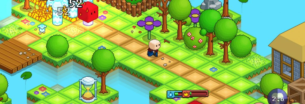 Mushroom Crusher Extreme, developed by Mushroom Party, is a top-down, arcade inspired game about fighting away a mushroom invasion. You play as, Zenon. A curved, blocky-headed mage that has magical spells linked to elements available at his fingers. He is however, racing against time, and once the time runs out, if he has failed to clear the level, then he’ll have to do it again until he does it good enough!