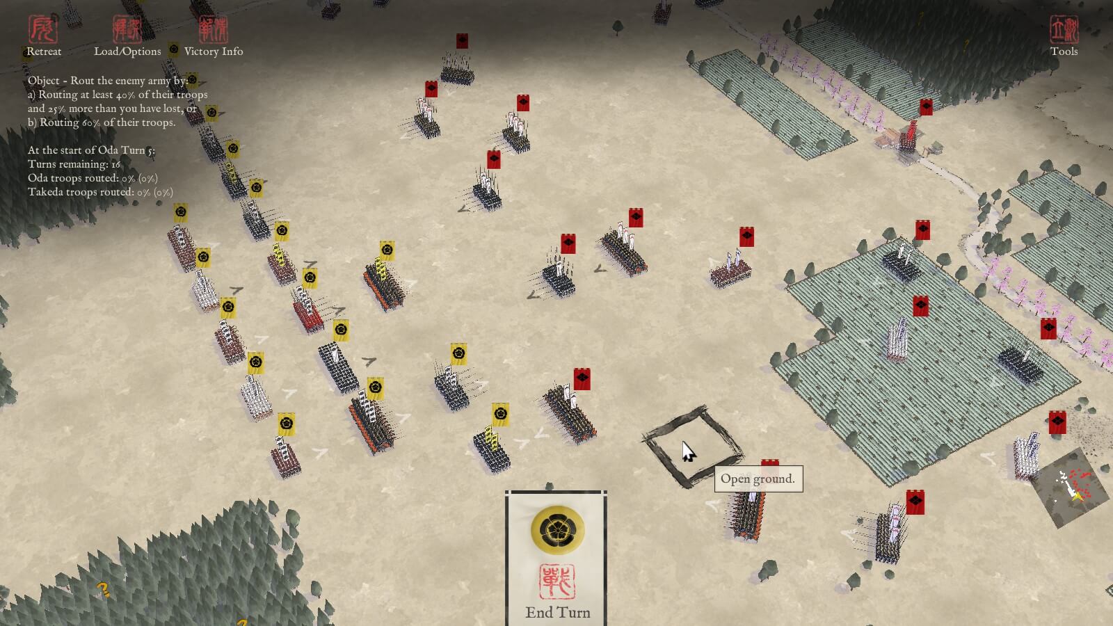 The first, and most immediate, change is the artwork of the game. From troop artwork through to the menus, and terrain itself, the game is wonderfully inspired by the Japanese art of the time – it truly manages to penetrate every part of the game.