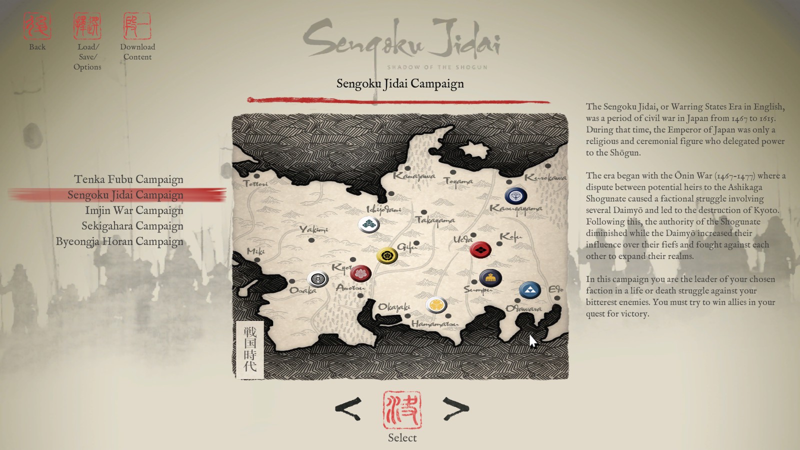 Japan’s Diamyo were a ruling class of land owners who exerted military and taxation powers over those who lived and worked on their land – similar in nature to the Counts and Dukes of Feudal Europe. In the mid 1400’s war erupted over who would inherit the title of Shogun, the open conflict ravaged important areas of the country, and continued to do so until the combatants wore down each other to a hashed stalemate. During this time the Shogun, expected to enforce peace throughout the country, did nothing to end the struggles. With this other families took to war over land and power. Japan was, needless to say, tortured by this time. After this came a long period of conflicts as Diamyo rose and fell in power in attempts to take control of the puppet Shogunate and unite the land under their families leadership.