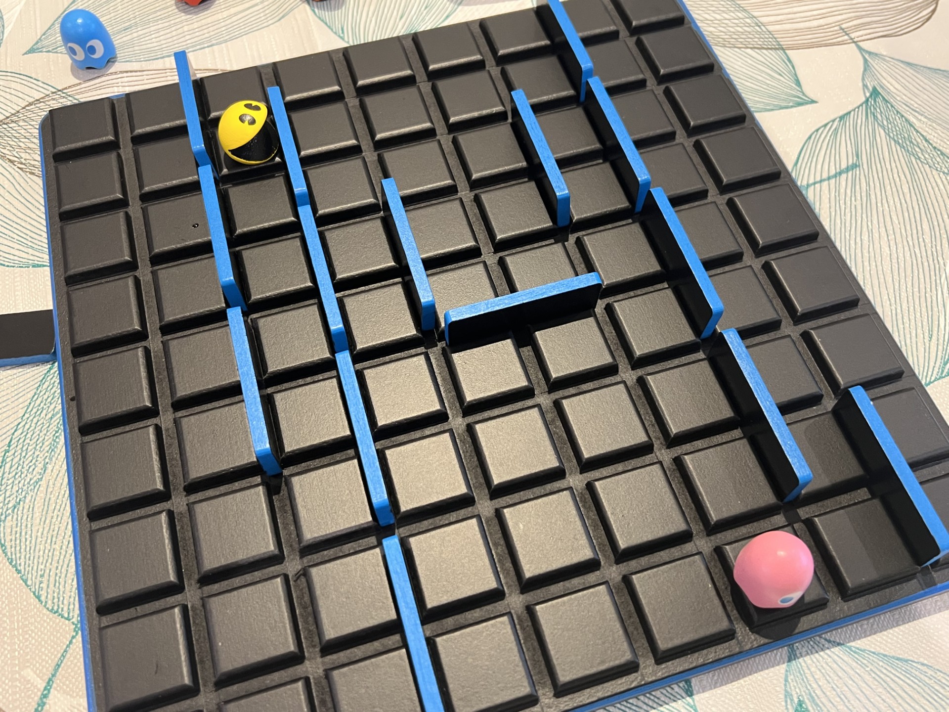 Flavien’s tweaks (available freely on BoardGameGeek) completely change the Pac-Man mode to make it more authentic to both the Pac-Man IP and the original Quoridor concept. In the variant, the setup is different, as are the ghost respawn mechanics, movement restrictions, and win conditions. For example, ghosts now return to their spawn points after being eaten, rather than being removed entirely. Pac-Man’s boosted movement is capped more tightly, and ghost coordination becomes more viable thanks to clarified turn sequencing. These changes make the chase feel more tactically balanced and less swingy, and they restore the tension that makes the original Quoridor so compelling.