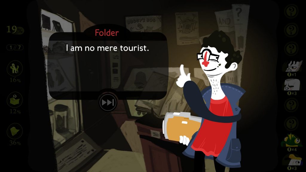 The art style is quirky and fun and I loved the short, animated cutscenes. The backgrounds and environments are really detailed and eye-catching too, and that art and music combined produce a game that is both very unique and memorable. The voice acting is also spot on in my opinion, with all of the characters having fitting and interesting voices, particularly the little girl and the café chef.