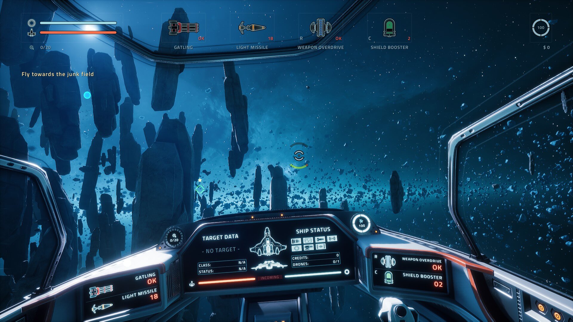 You start out obviously in the first part of the first sector of space. Luckily, there is a tutorial voiced along the way for everything new that you encounter. My only problem with that was that I was frequently getting my little ship-head pounded while I was trying to listen (and read, as I had the subtitles on too). Nevertheless, what your guide was telling you rapidly made sense. Also explained during the advice, there are three main types of interstellar travel in EVERSPACE: wormholes, hyperdrives, and jumpdrives. You will quickly and easily get to know the differences of each.