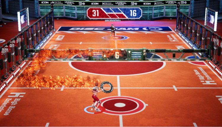 Disc Jam takes this same concept and brings it to modern systems. Its basic premise is that it is a 1 v. 1 (or 2 v. 2 in doubles) sports game where you throw a flying disc in an attempt to get it past your opponent, or hit the ground on their side of the court. So far, so simple, but this game has some serious nuance to the controls.