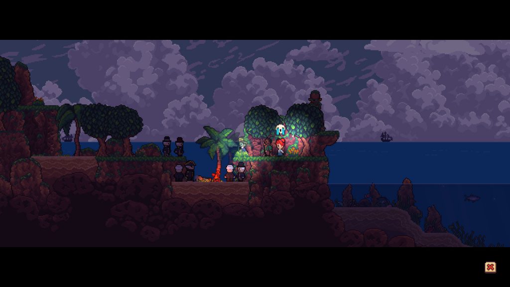 When you’re not fighting at sea you’ll be peeling back the fog to visit islands around the map, that or exploring the islands in 2D platforming fashion. There’s plenty of loot to be gathered, as well as a functional (if light) trading and resource system which powers you upgrading your ship and home island. There’s a lot of character here, including islands with really distinct themes and the wanted criminals that hang around near them.
