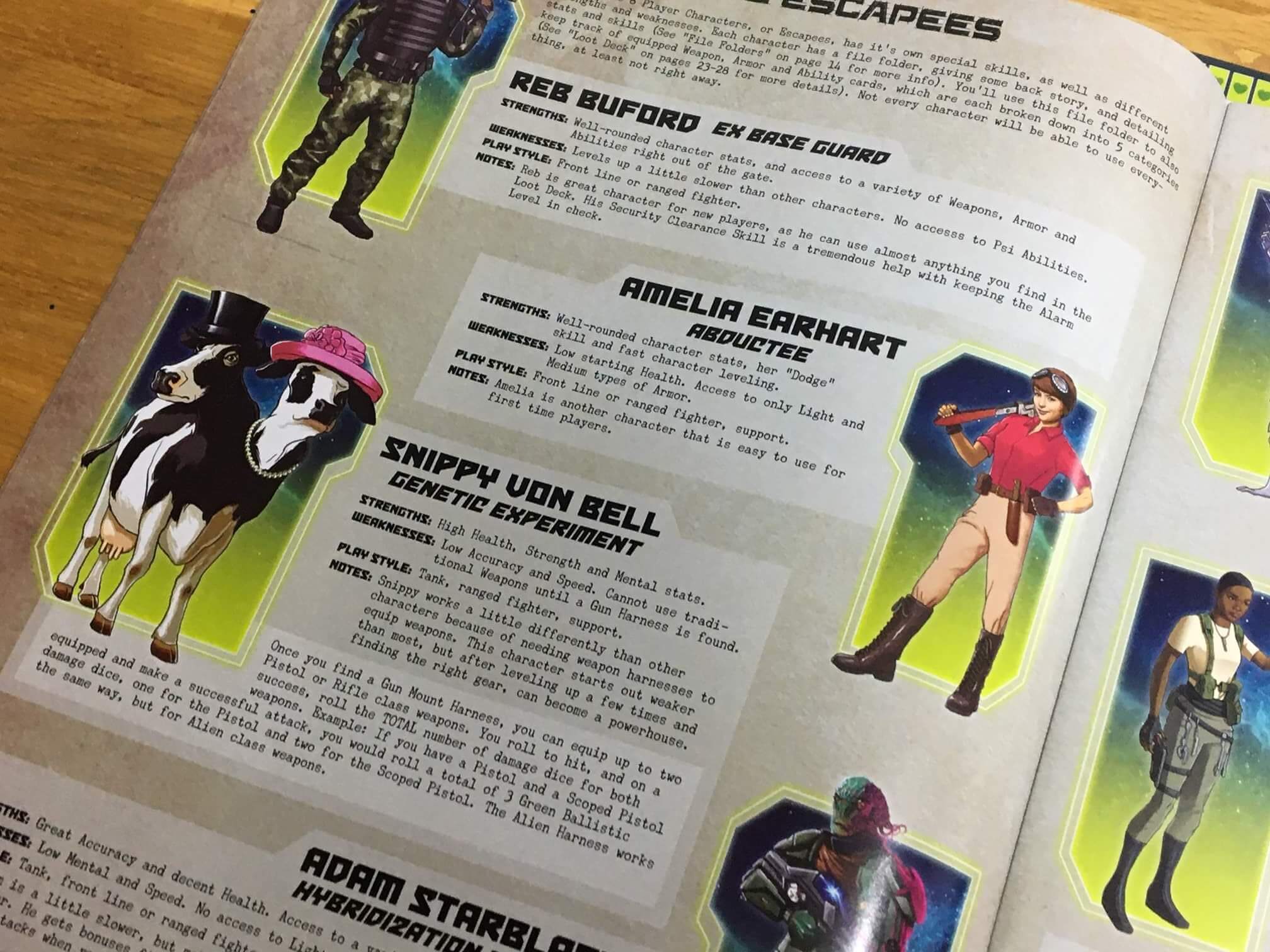 On that note, the players will choose from a huge roster of characters, each of whom comes with a large dossier that provides a ton of flavour text and information, whilst also acting as the player board during the game. The choices are practically limitless, from paranoid ex-soldiers and previously abandoned grey aliens, to a family that has been mutated into a single creature and a talking cow with two heads.