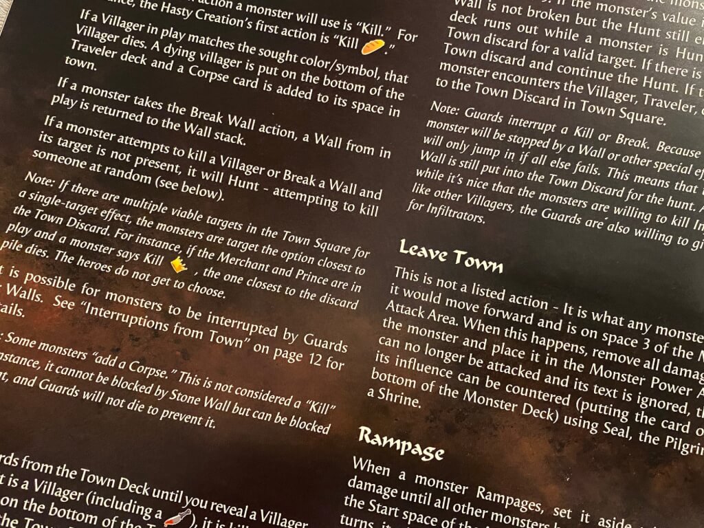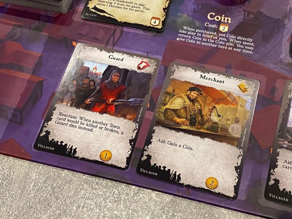 But tough as it is, this is a fantastic deckbuilding game. Firstly, it looks incredible, with a really dark, fantasy theme that is a little generic on one hand but so well realised across the entire component set that it can be forgiven on the other. Every creature snarls and drools with intent, whilst the villagers all deserve to be saved — from the cute urchin to the kind-natured but ultimately doomed guardsmen.