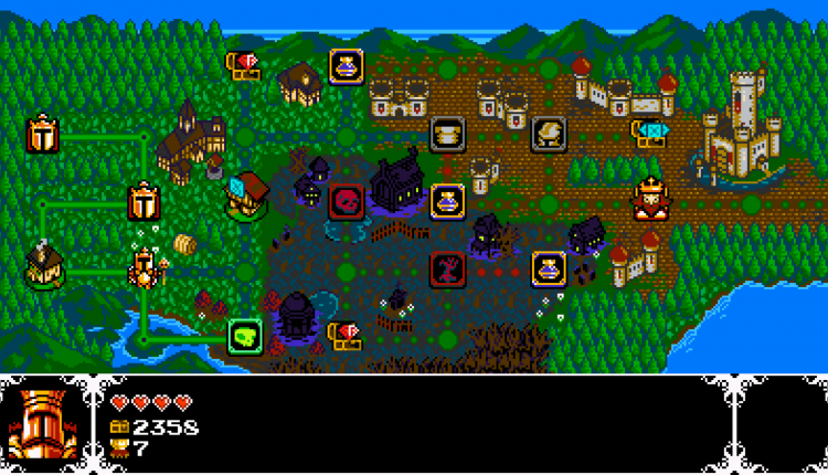 Joustus isn’t the only way you’ll be facing off against foes in King of Cards. You have to defeat them first before they will board your ship and provide you with the opportunity to throw down. Nearly every knight from the series can be found roaming the Super Mario Bros. 3 styled overworld map, waiting for you to stumble upon their icon and face them in a boss battle.