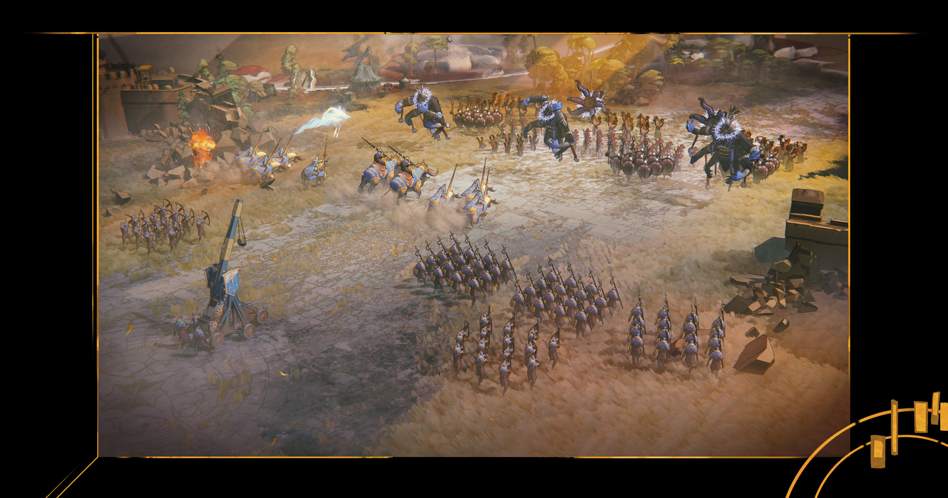 This point is emphasised by the fact that each hero can support only a limited number of units within their army, and may give bonuses to certain kinds of units. For example, if you plan to besiege a large and well defended city, you may need to use a larger force — or alternatively you might attempt to whittle down a standing army with your smaller force, then withdraw it and attack with your larger army to finish the job.