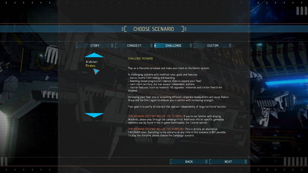 You start without a fleet but have five million dollars to spend. Do you use it on your ship by buying enhancements? Do you use it to start building a fleet, as you start without a single ship other than your own? The whole “Challenge” certainly takes a bit of getting used to. (The A’shiari story part of Cycle of Warfare is stashed in the Challenge section at game start. It took me a bit to actually find it, initially thinking it would be either in the Story or Conquest part of the setup). Everyone is antagonistic and there is no fog of war.