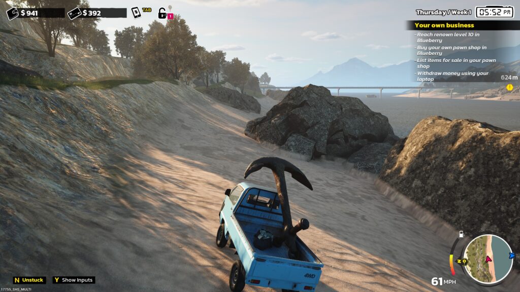 You can also buy new cosmetics and vehicles, the vehicles seem to be the go to item to make your transporting needs that much easier. With the sheer amount of items you get from some of the auctions it can take several trips to-and-from some locations just to get the items sold. Some of the shops that you sell to have a closing time as well so it’s just a matter of getting the items to the store before it closes otherwise it can despawn leaving you heavily in debt