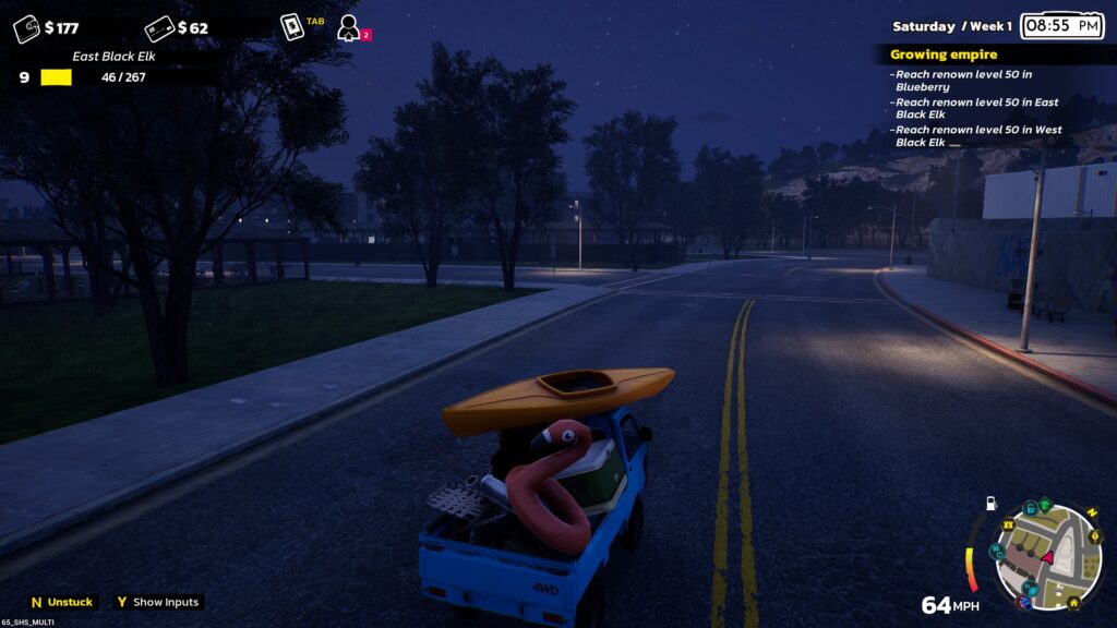 The map does also show a carnival up to the north, this lets you win tickets to be spent on more cosmetics and vehicles. Most of the vehicles seem a bit novelty, like a school bus, but if you can make it work then so be it. The games themselves seem to universally cost $250 which is quite expensive and getting the tickets can be a bit of a slog so it’s not particularly necessary to do.