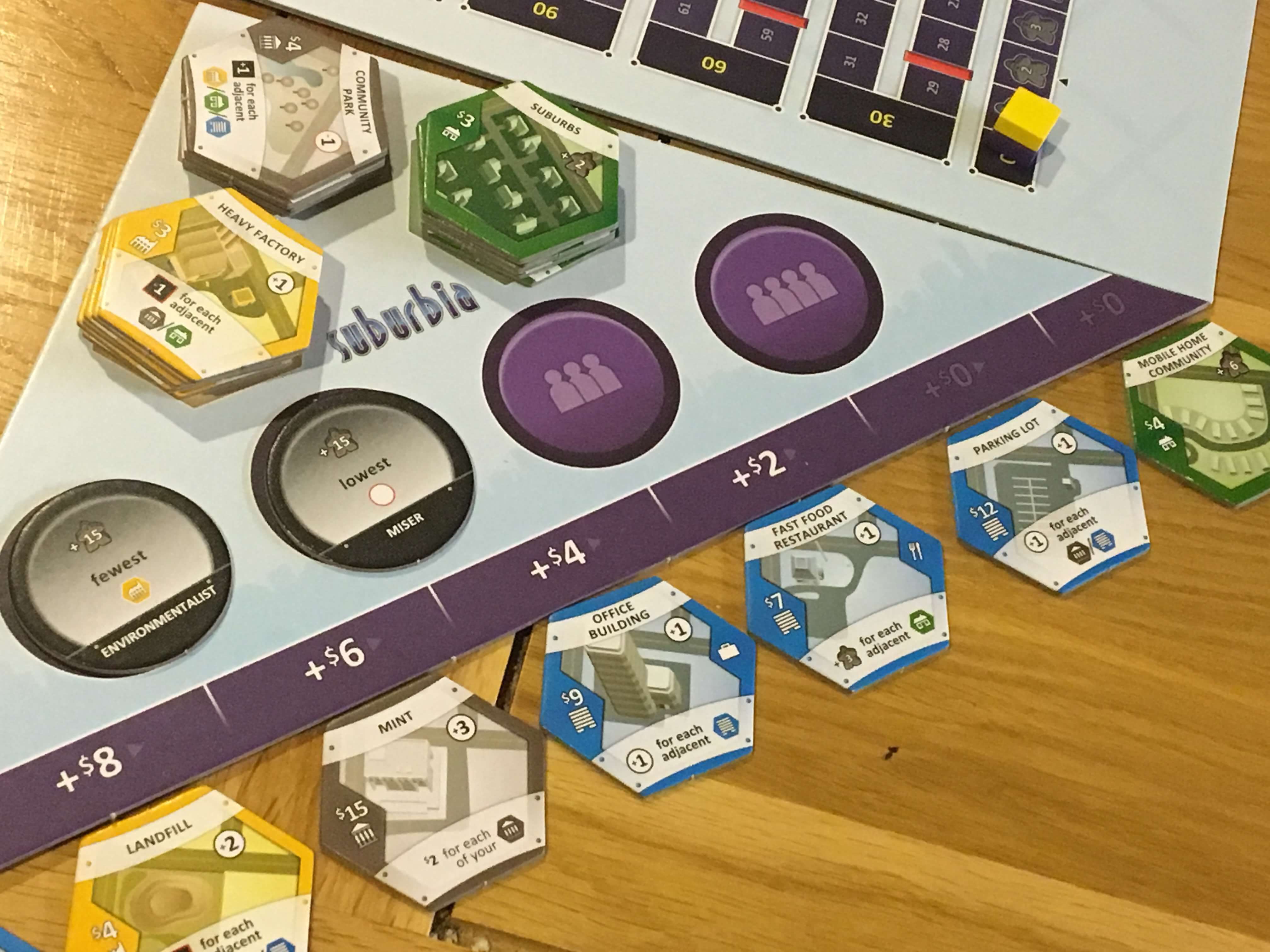 A copy of Suburbia was provided for review purposes. You can find out more about it on the website of publisher Bezier Games.