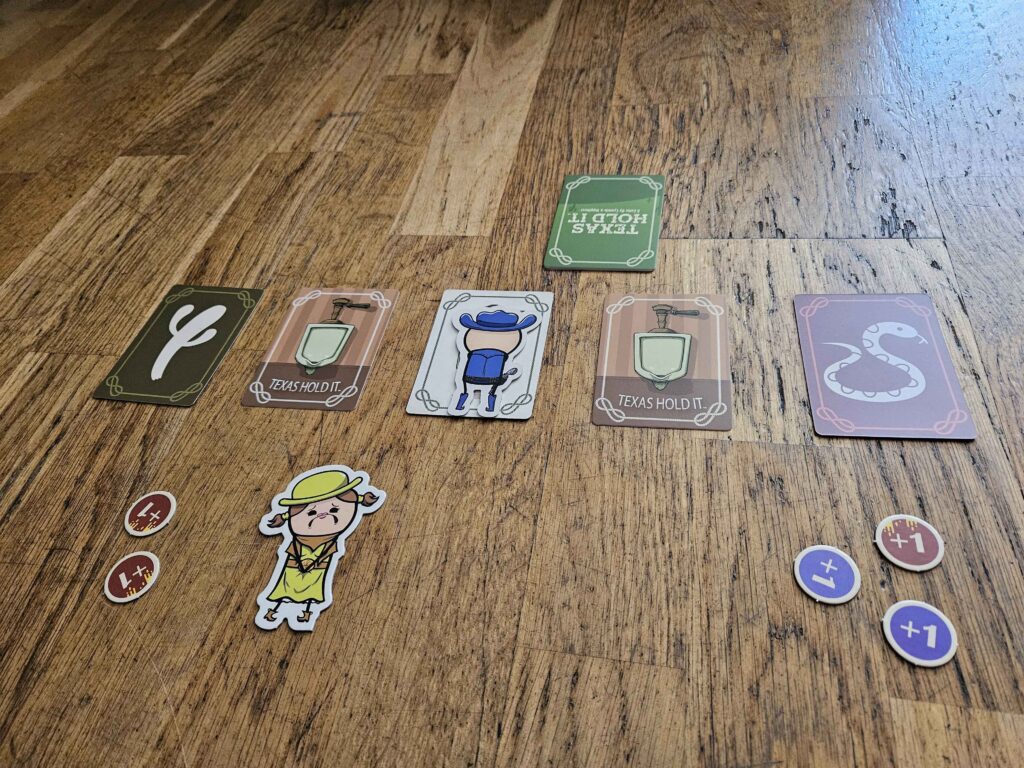 Deception seems to be the key to winning Texas Hold It. I played with one other person, but with the combinations available of up to six people this can get really confusing fast and leaves you with fewer options to safely relieve yourself as every turn ticks by.