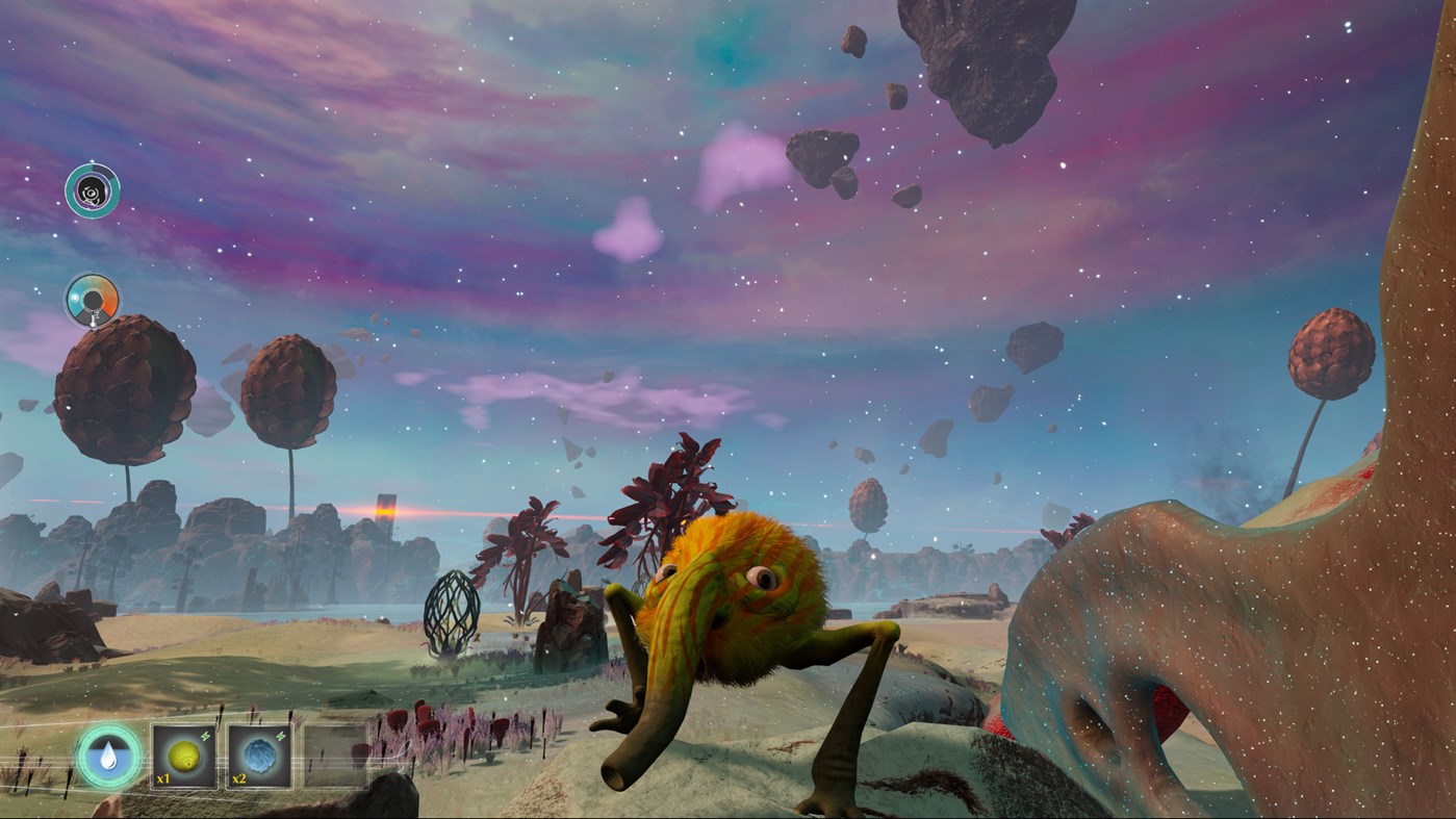 Our starting Trebhum (and up to four family members gathered during the game) are the unsung heroes of this world — able to consume materials and then adopt their properties — and must attempt to save it. The progress of the Cylinder can be slowed by activating towers that link across the landscape via a string of light, which also serves to direct the player to their next objective.