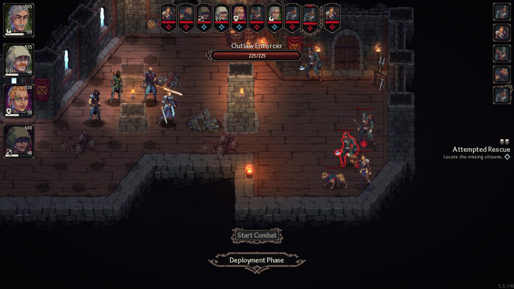Combat feels smooth and well balanced, which is great because it’s quite central to the whole experience. However, there are still a few things in other parts of The Iron Oath that just don’t feel quite as optimised as they could. One pet-peeve in combat is that characters only change facing at certain times; in most 2D tactics games the two fighting factions will be either fixed to a direction, or very clearly marked based on their team, neither is the case here and characters will change facing based on where they moved from rather than where they last attacked. There’s also a crying need for some attention to the menus. When recruiting in the Inn you can’t quickly view your existing teams, and recruitable character classes are only listed by word, while they have very easily understandable icons in the character select menus. Similarly, when shopping in the town there’s no quick equip function. These two things combine to make recruiting a new candidate and then equipping them with items into a much larger effort than it should have been. However, these are exactly the kind of things that could be fixed before it leaves Early Access.
