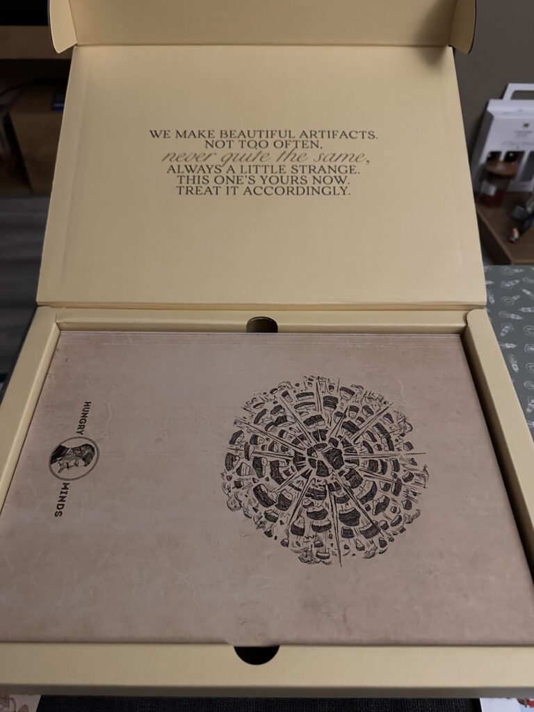 From the second I began to open the box that contained The Last Book, I was met with a message emblazoned within: We make beautiful artefacts not too often. Never quite the same. Always a little strange. This one’s yours now. Treat it accordingly.