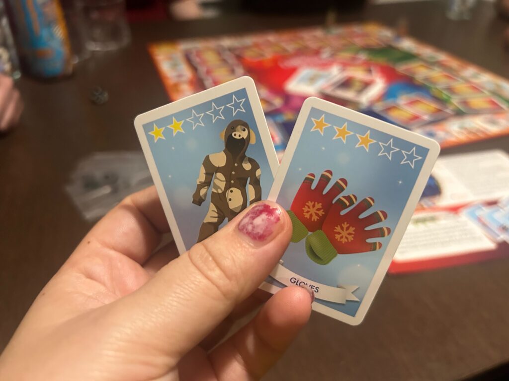 The paper crown which was mentioned earlier, may feel like a strange tile that you might land on, but this jolly hat makes you immune to the Christmas Carol singing, which is valuable as if you fail to sing then you will lose a random card from your stocking.