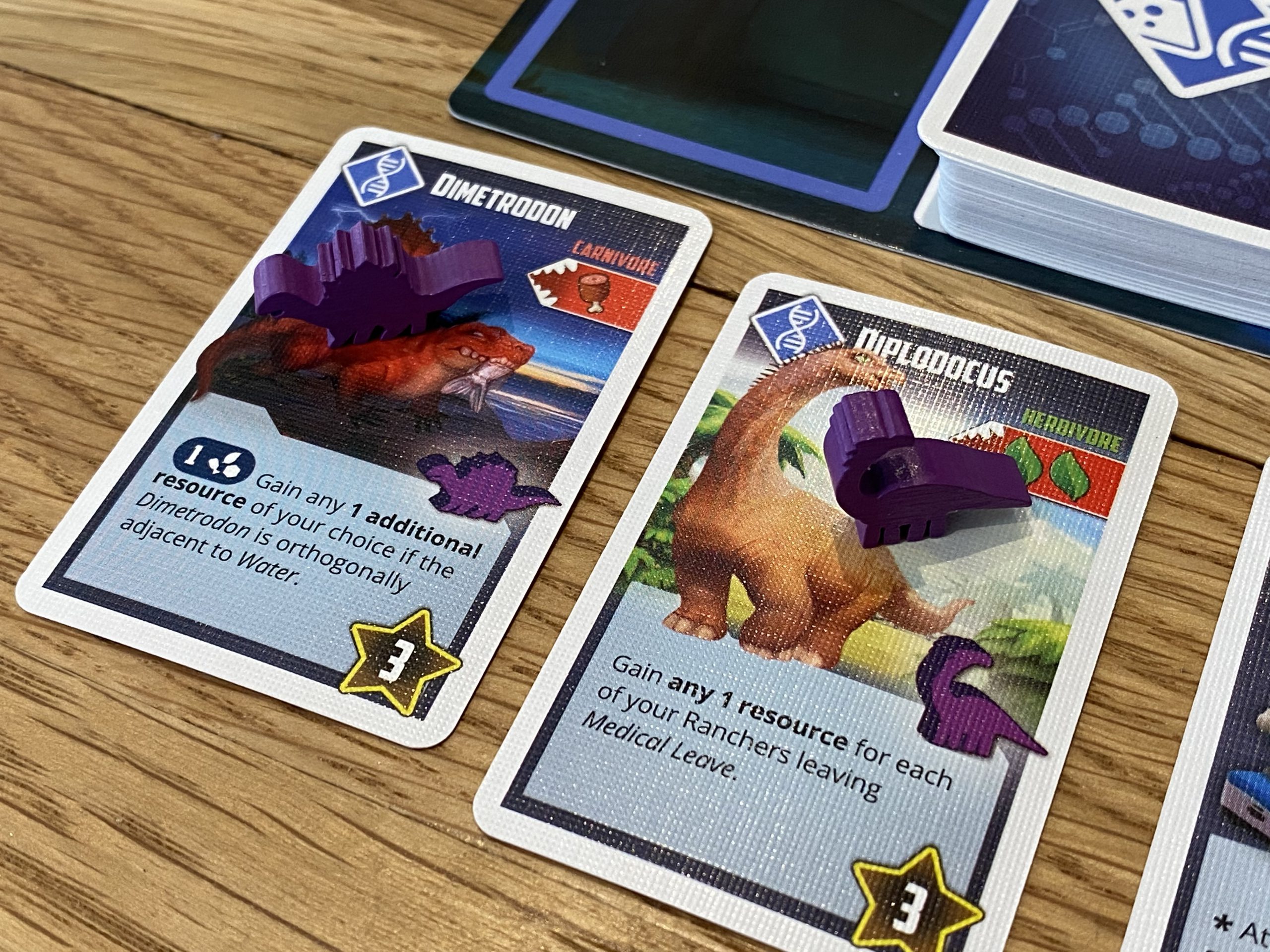 Science cards are an interesting twist on the normal ruleset, and because they provide both points and ways to enhance your engine, are very attractive. Whilst more than half of these cards offer bonuses to the way in which the park is built, or how dinosaurs are fed (or similar) a surprisingly large number of science cards feature unique dinosaurs like the Plesiosaurus or the Gallimimus.
