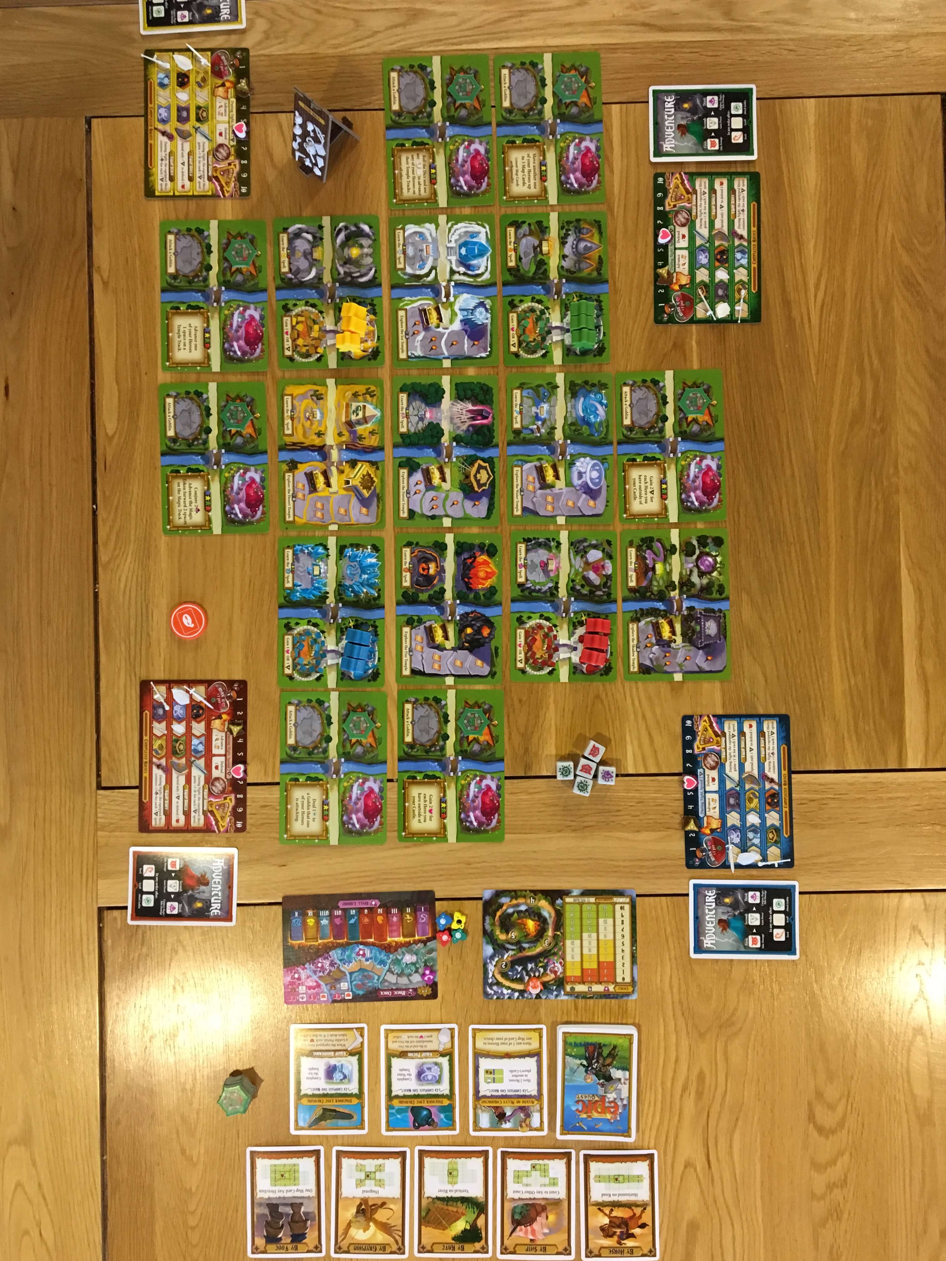 There’s a lot to take in when it comes to learning and teaching Tiny Epic Quest and I’d say that it is perhaps a bit challenging to get into — it takes at least two or three games to become fully proficient with how some of the features work (for example, the fact that meeples are withdrawn when you rest and all progress towards uncompleted tasks is lost). That said, it’s a game that you only really learn by playing it – a brief overview followed by a learning game was much more effective in my experience than a long, detailed overview.