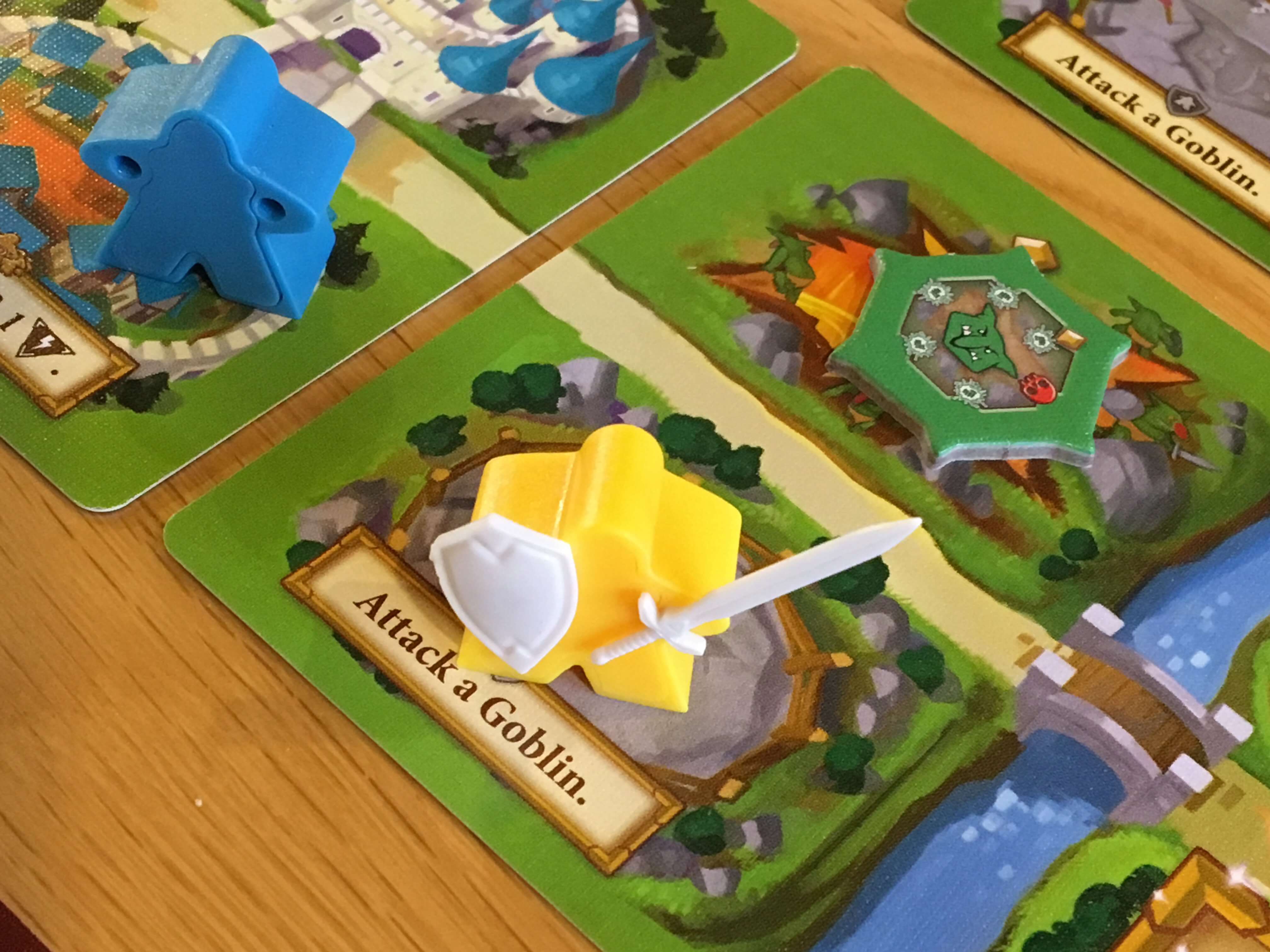 The objective is to amass the most points (as a product of undertaking the heroic deeds I’ve been hinting at), but there’s also a racing element — the game ends when either the last goblin is defeated or as the result of closing the portal that unleashed them upon the world. As a result, players who plan lots and act little might find themselves unable to convert their efforts into points.