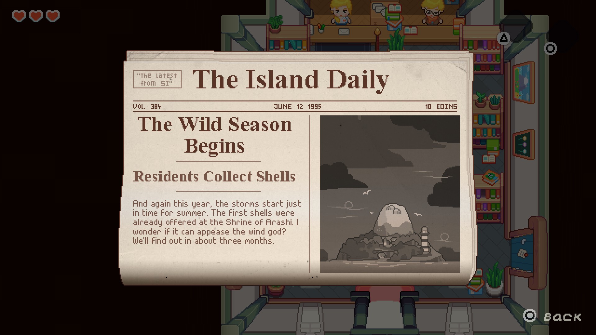 Maybe it’s just my Roguelike burnout, but it was so refreshing to see detail and a sense of bespoke crafting in Under the Island. The map screen is lovingly recreated, exteriors are littered with unique details and interiors are built for exploring too. From little kittens in town to varying fauna and flora in swamps and forests, the game is nice to look at.