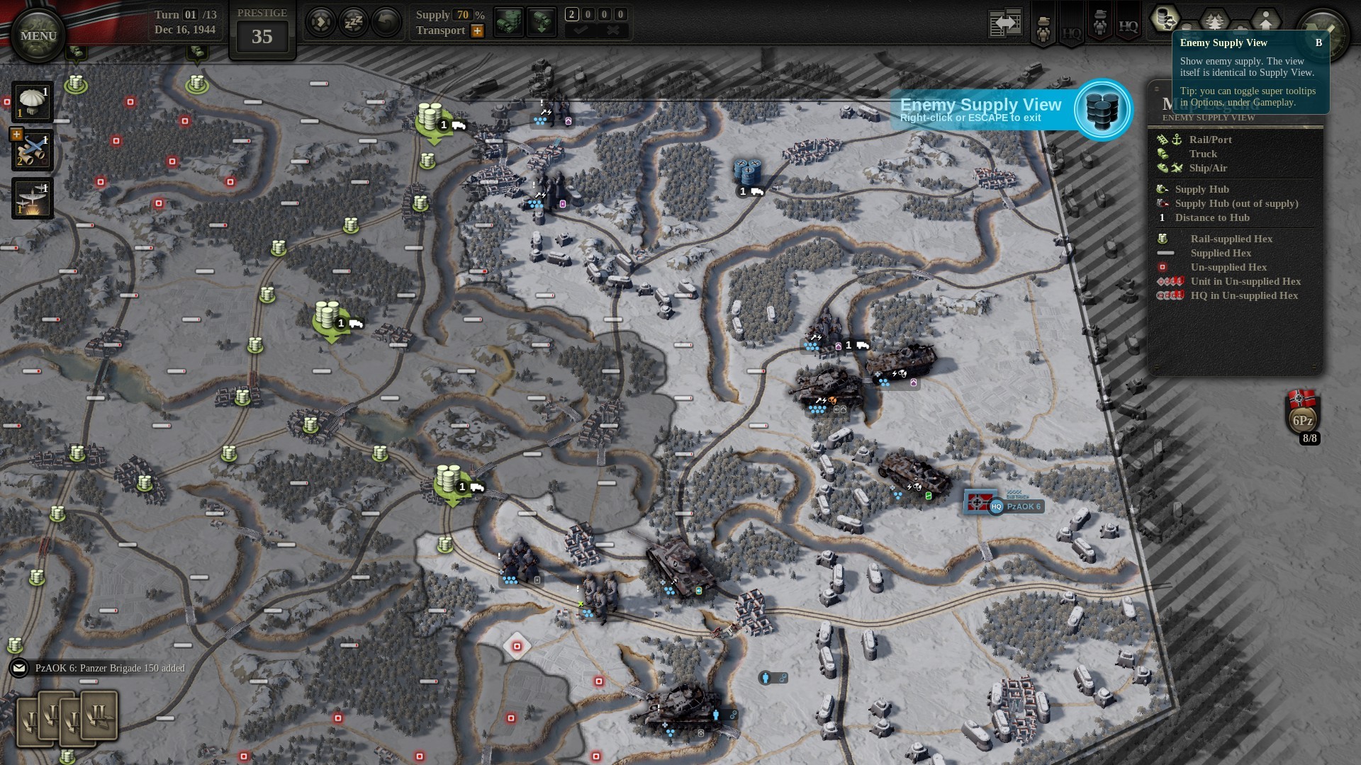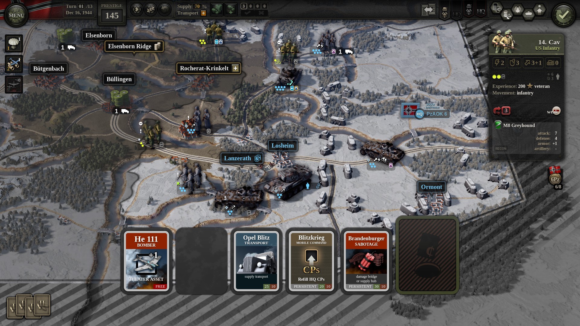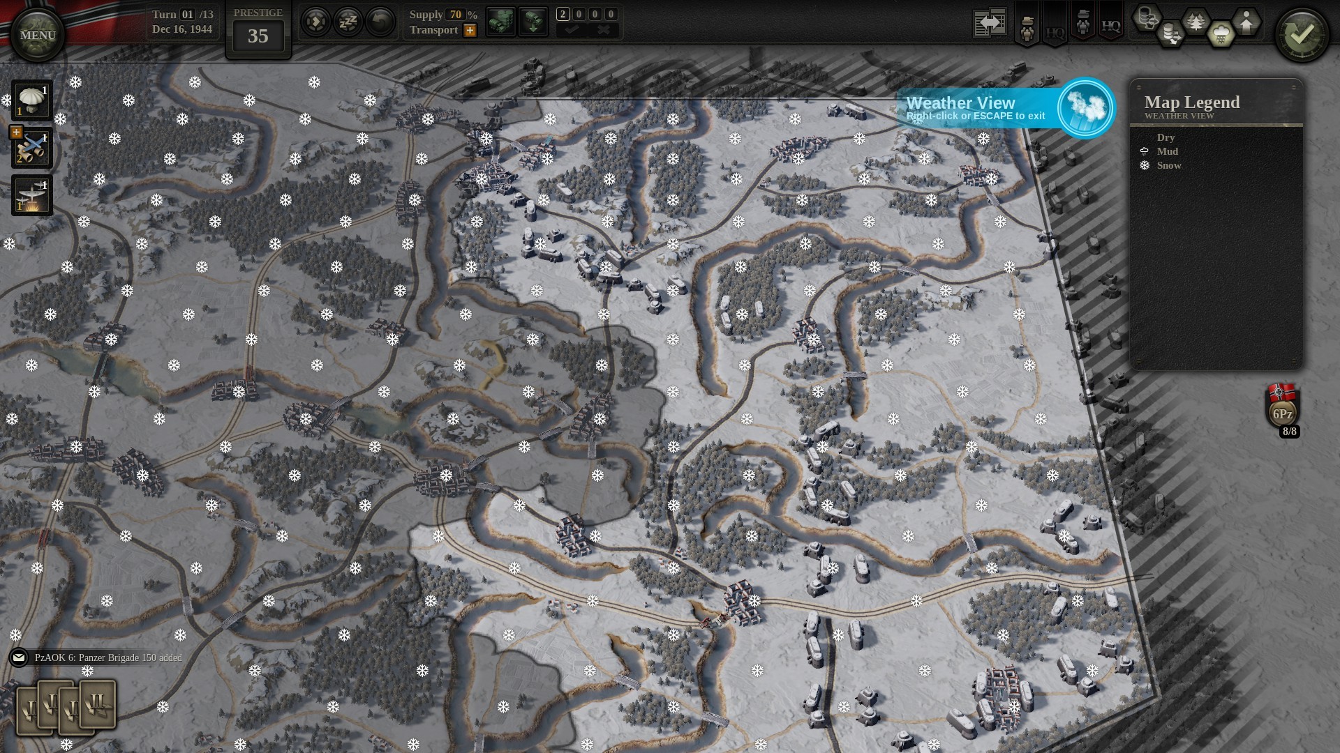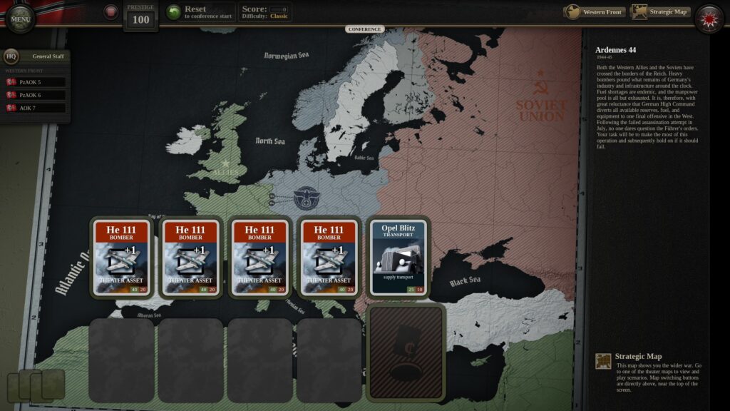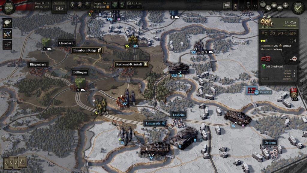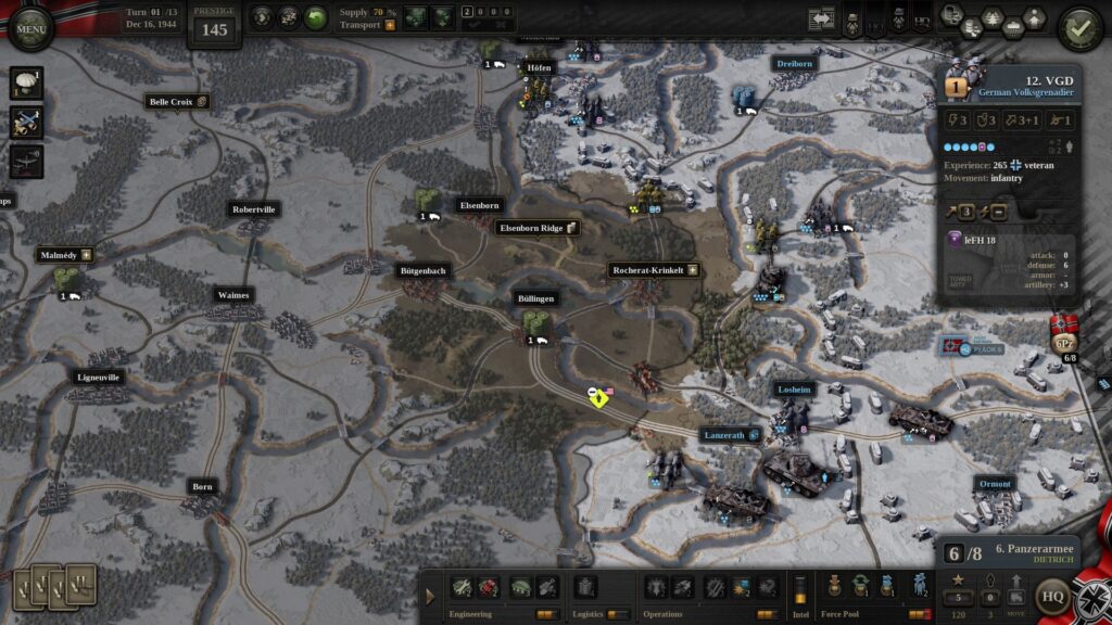 However, in Unity of Command II, “Prestige” is an often overlooked, but extremely important part of your war effort. Prestige is used in various of ways to strengthen your armies (during a campaign) and can help you with a victory which other wise could’ve been a loss. A lot of Prestige is for, but not limited to, your Headquarters’ improvements and upgrades.
