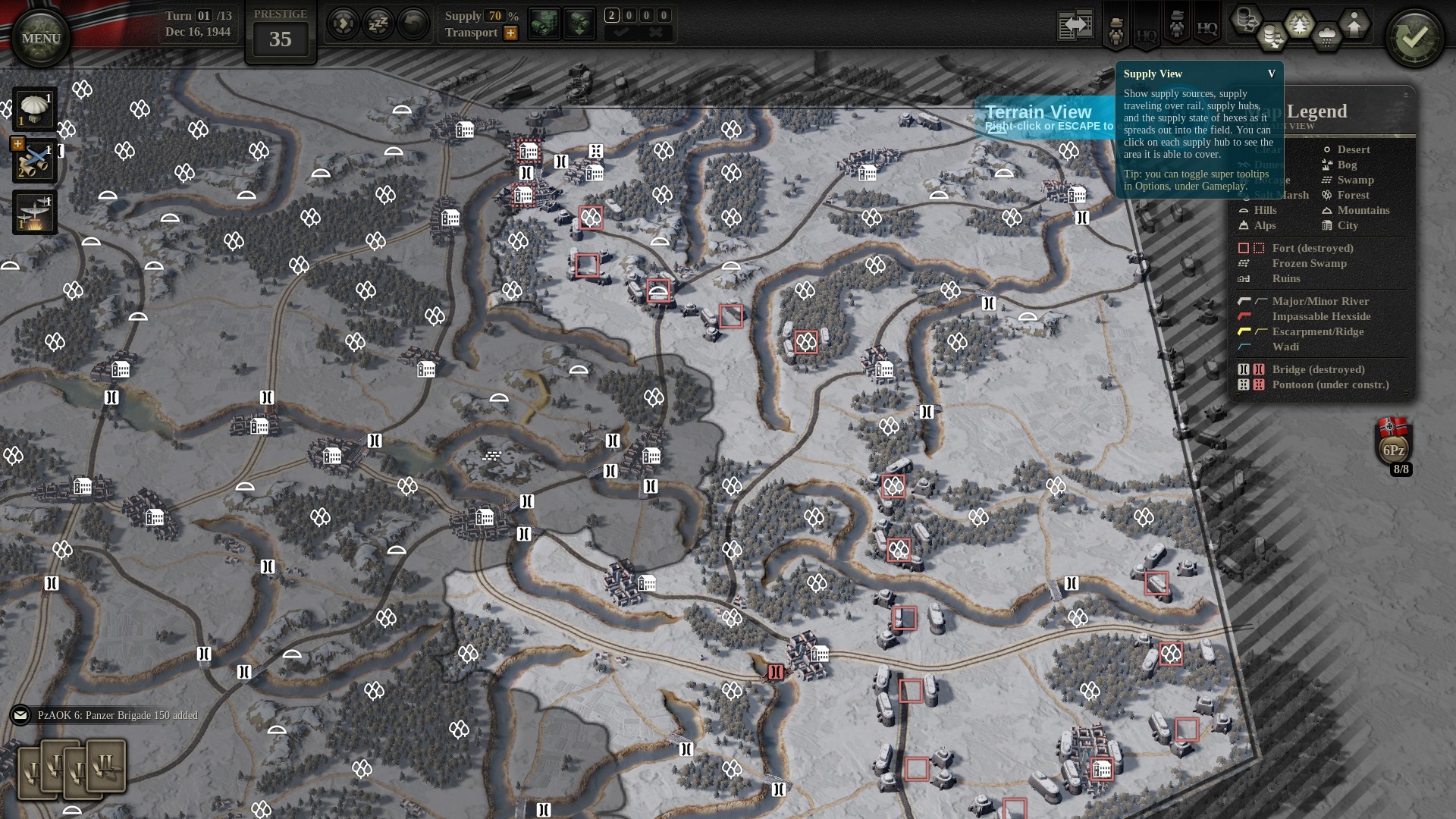 I’m not going to do a whole spiel about Supply. Both wargames and wargamers generally know the ins and outs of supply. Your unit’s in supply, it behaves normally… out of supply, it’s generally in trouble.