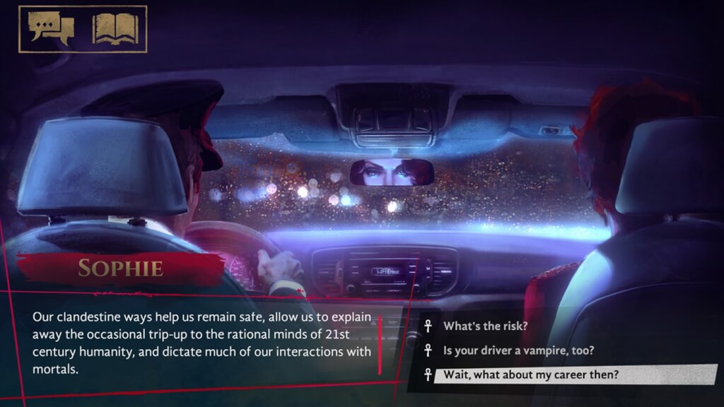This can be problematic because a lot of the dialogue choices allow the use of one vampiric power or another, and these can be blocked if the player is low on blood. There’s a threat that “The Beast” might take over if you get too hungry, and whilst this did happen to me once, my character was able to resist temptation before actually killing anyone — which in a more rounded game might have resulted in some kind of consequence.