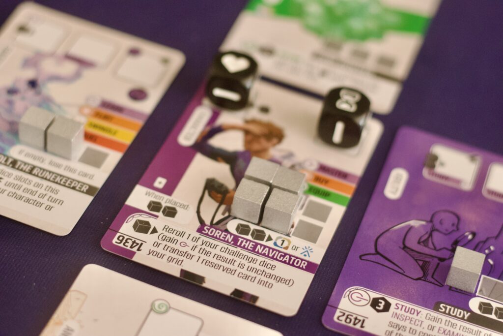 Once you’ve discovered an extra card or two for your grid the game will really come alive as you start to explore your newfound abilities. In fact skill tokens will become less relevant the more things unfold, they are very much a way of easing you into the world. Most card abilities revolve around earning and spending boosts which you will track of on the card using little cubes. There’s a lovely feeling of progression as your capabilities increase and you start to discover nifty combos to aid yourself and your comrades.