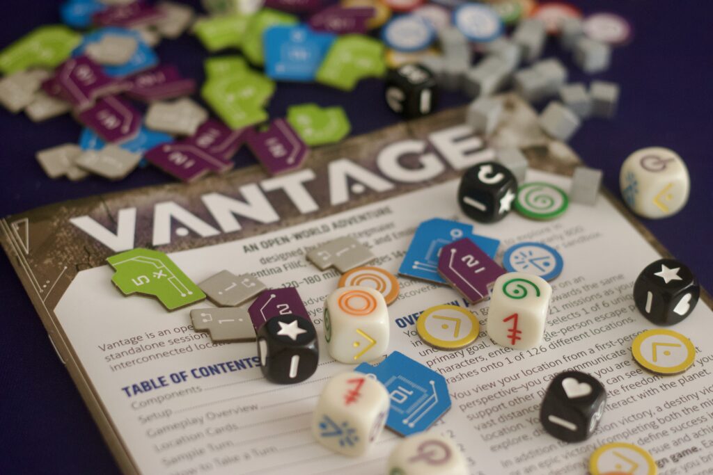 In Vantage you and your crew mates have crash landed on a strange and mysterious planet, each of you at different locations. You will need to work together, describing what you see so that others can offer expertise and advice as you explore this strange new world seeking to complete your mission or perhaps reveal an even greater destiny.