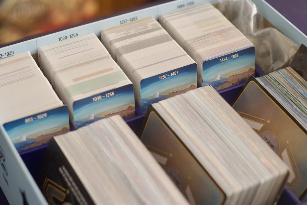 There’s eight hundred locations in the box so it’s going to take you a good few plays before you see the same one twice, or even recognise someone’s description of a place when you eventually stumble into it. Cards that go in your grid have their own distinctive style that sets them apart from the location cards, one of the perks of having three artists work on the game: Valentina Filić, Sören Meding and Emilien Rotival. Every new card reveal is a bit of a thrill and is a huge part of the enjoyment.