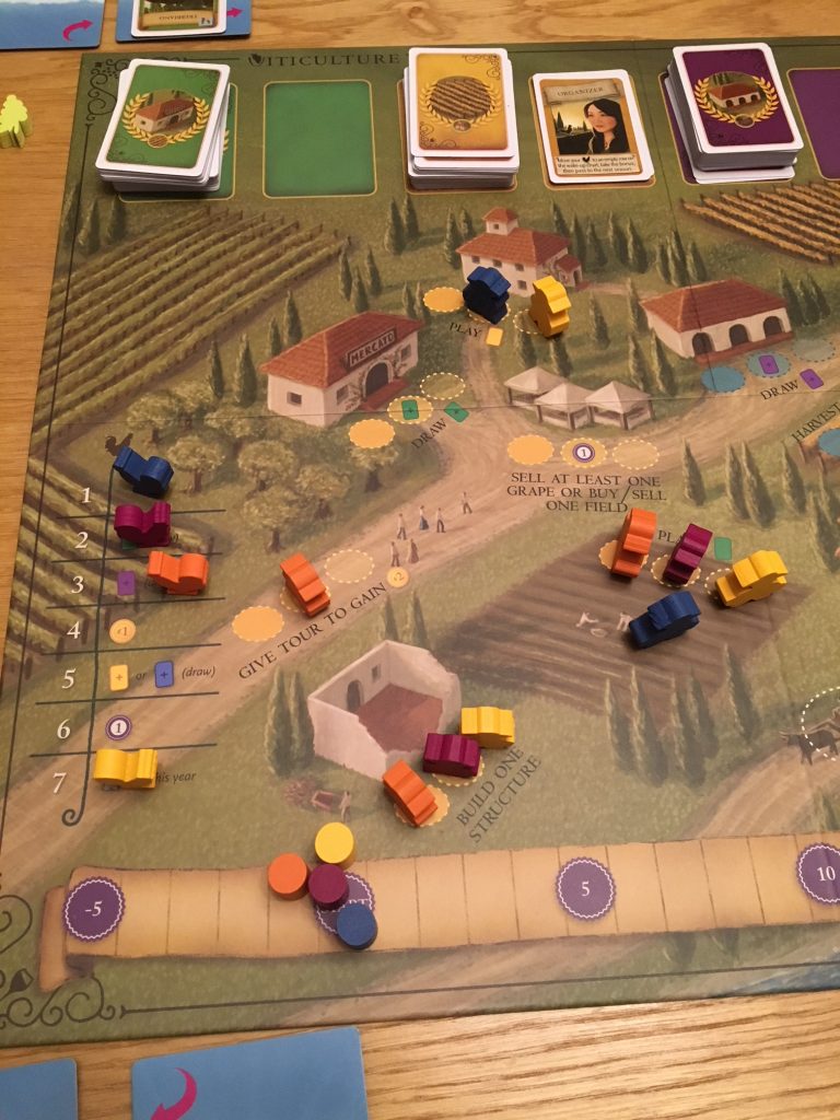 I hope, by now, you’re getting some idea of how complex the decision making in Viticulture can be, and that, my friends, is why I absolutely love it. It’s also why my fiancée hates it with a passion which burns as hot as the fire of Mount Doom. Two or three other people I played with came to this same conclusion, such was their revulsion at having to think about a game across such a broad spectrum and in an environment which is (no matter what anyone says) actually quite hostile. Sometimes, you’ll put workers down just to stop someone else doing something, which in a game about such complex engines as Viticulture, can be devastating. Where I find joy in the diversity of options and ways to win, some people find confusion and frustration, which I can actually understand.