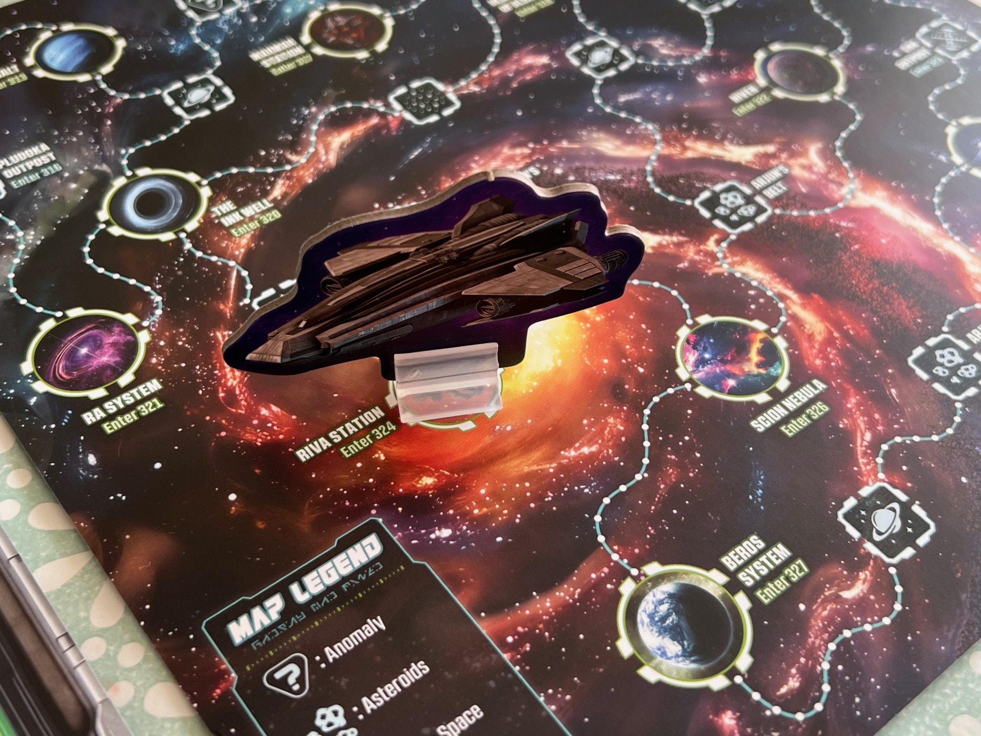 As with most other recent Crossroads games, Wandering Galaxy is driven by both a web based application and a location book. It is possible to buy a separate adventure book that replaces the app, but to be honest I like the way the app helps with certain aspects of setup and rules management, and in particular I enjoy some of the spoken voice acting. It’s not stellar in its delivery, but it certainly does a better job than I would, personally, over such a large amount of text.