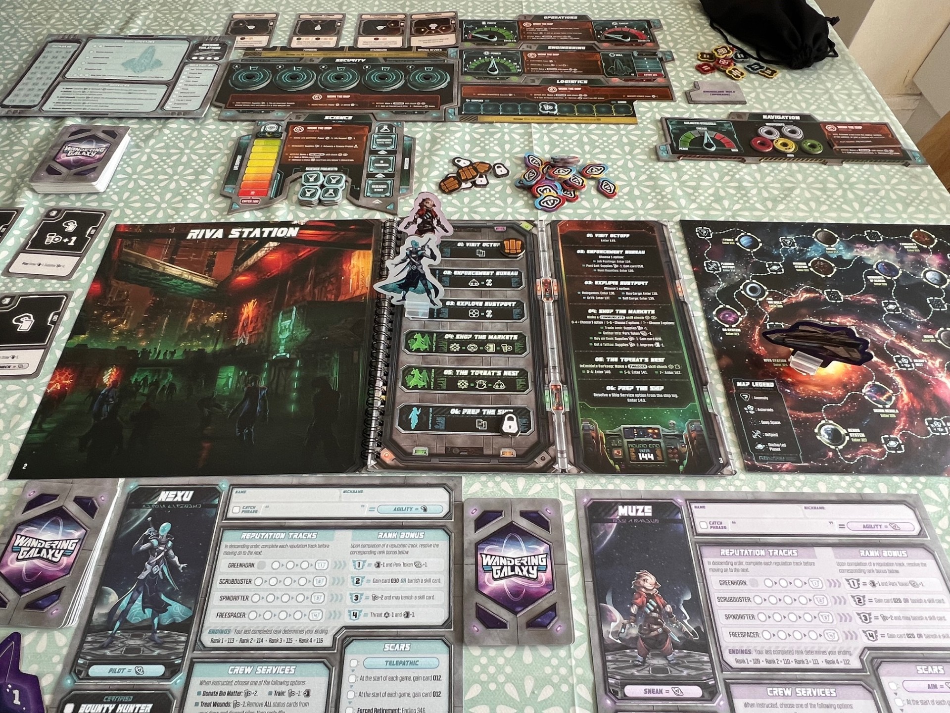 Overall then, I’d say Wandering Galaxy is a very engaging, very enjoyable experience that is perhaps just a bit more daunting than it actually should be. It feels a lot to get to grips with at first, but is actually quite light, and whilst it does demand time to complete, a save system (for both physical and virtual components) works really well. Wandering Galaxy is pretty unique when compared to games outside the Crossroads system, and if the idea of a feature rich, app-driven choose your own adventure in space appeals to you, then I think you’ll have a lot of fun with it.