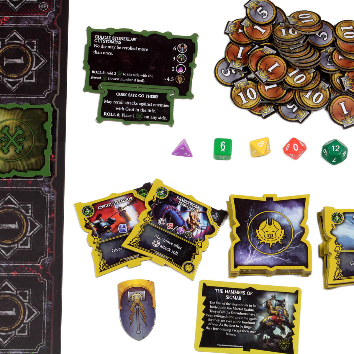 During setup, players will choose the difficulty level (ranging from hard, to ohmyfudginggod hard) and then decide which enemy they wish to fight. The base game (which is all that is currently available) includes classic Warhammer bad guys, Chaos, Orks and Skaven. The players then choose their own factions from the six available, which include various factions, predominantly from the human and dwarf races.